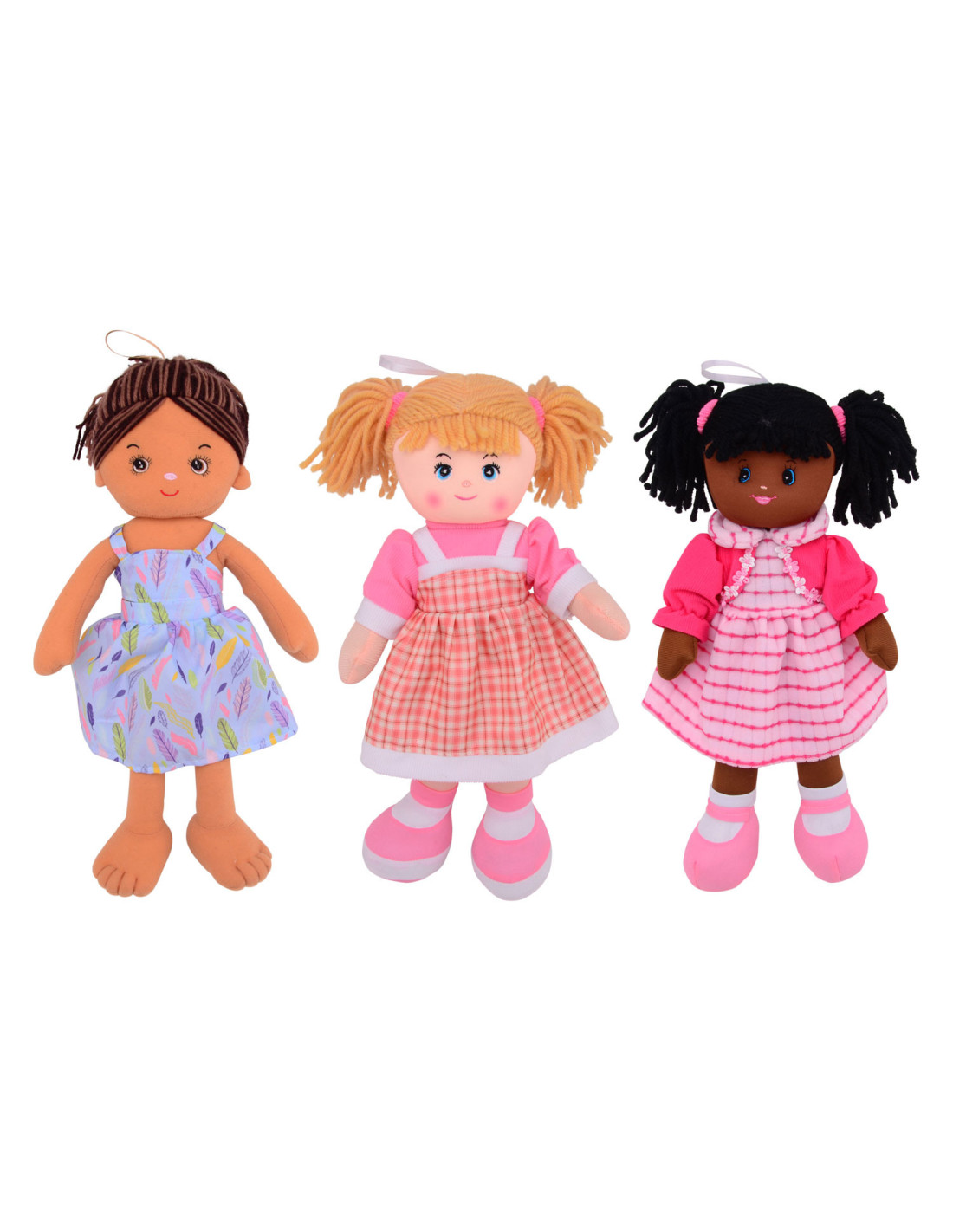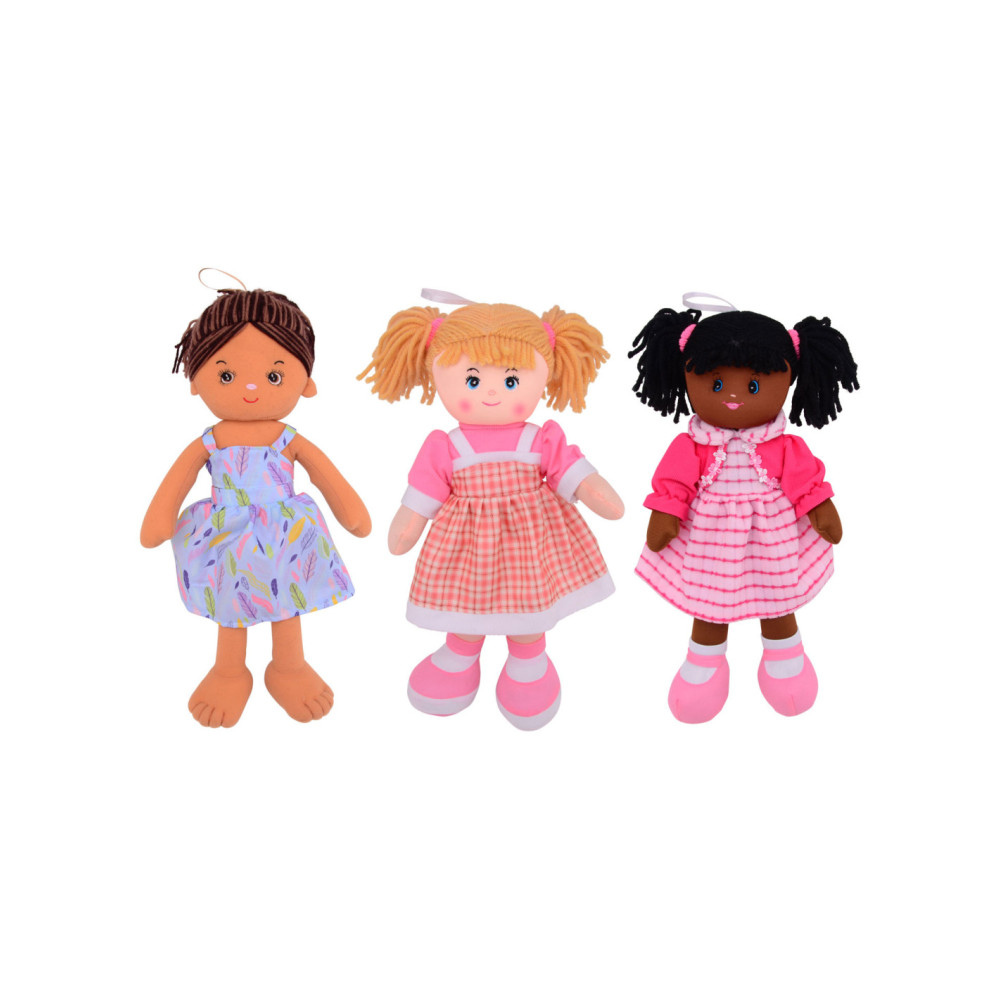 Lappenpop Rose (40cm) met jurk. In drie verschillende uitvoeringen. Gemaakt van textiel en geschikt vanaf 3 jaar.