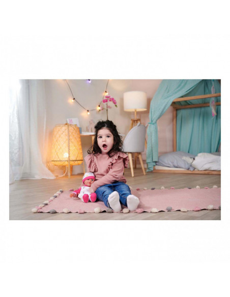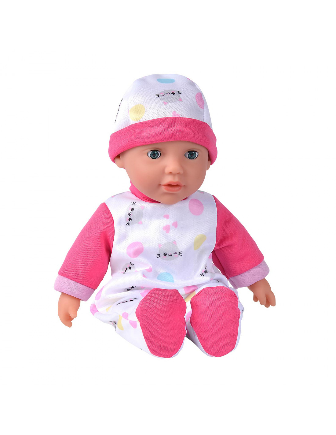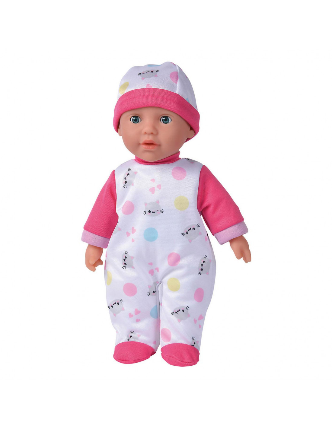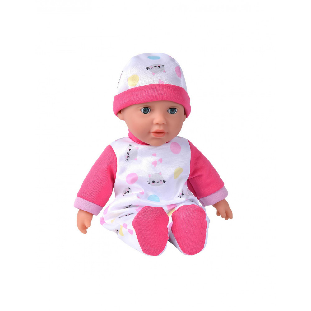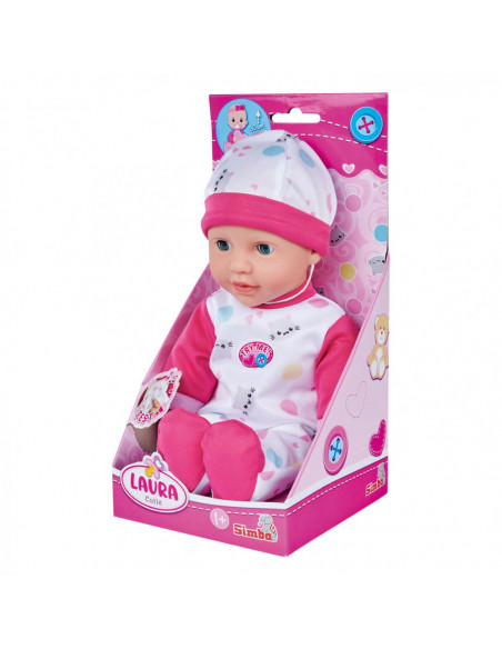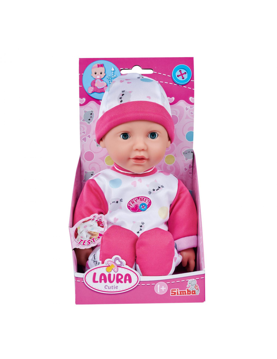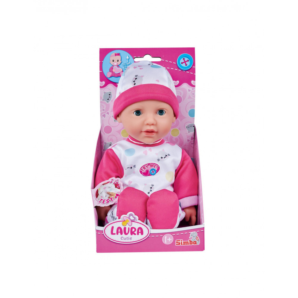 Babypopje Laura is 30 centimeter groot en lekker zacht en knuffelbaar. De pop draagt een lief poezenpakje en een afneembaar mutsje. Haar ogen kunnen open en dicht en als je op haar buikje drukt, maakt ze vijf verschillende babygeluidjes. Geschikt voor kinderen vanaf 1 jaar oud. Werkzaam op batterijen (2x LR41, inbegrepen).