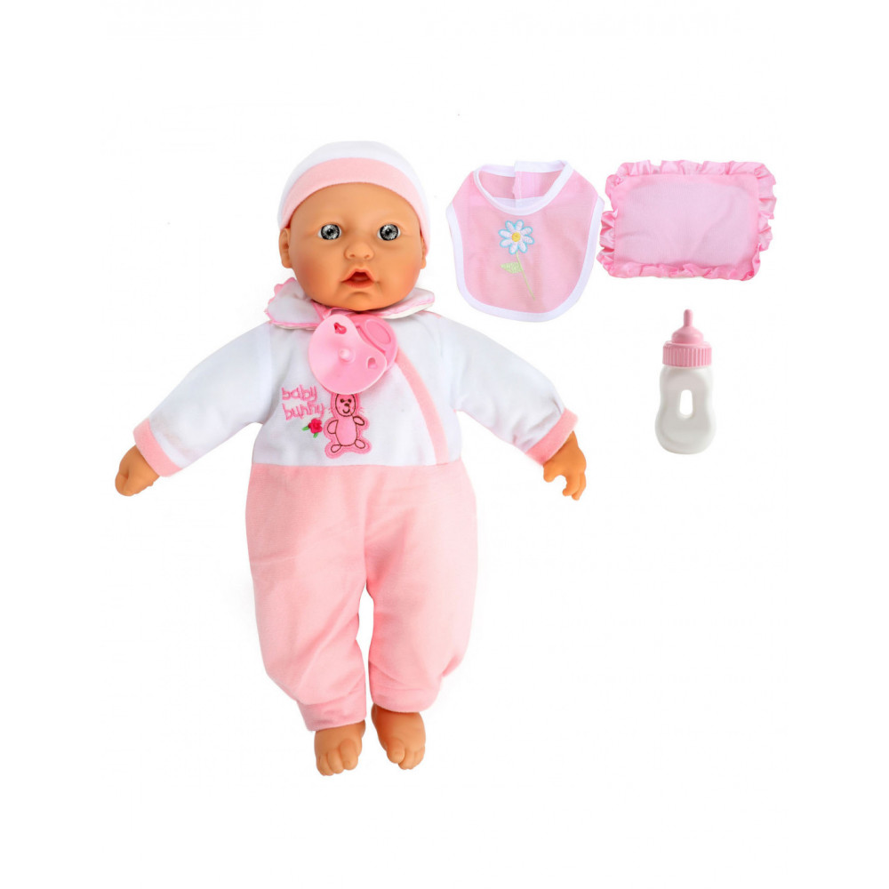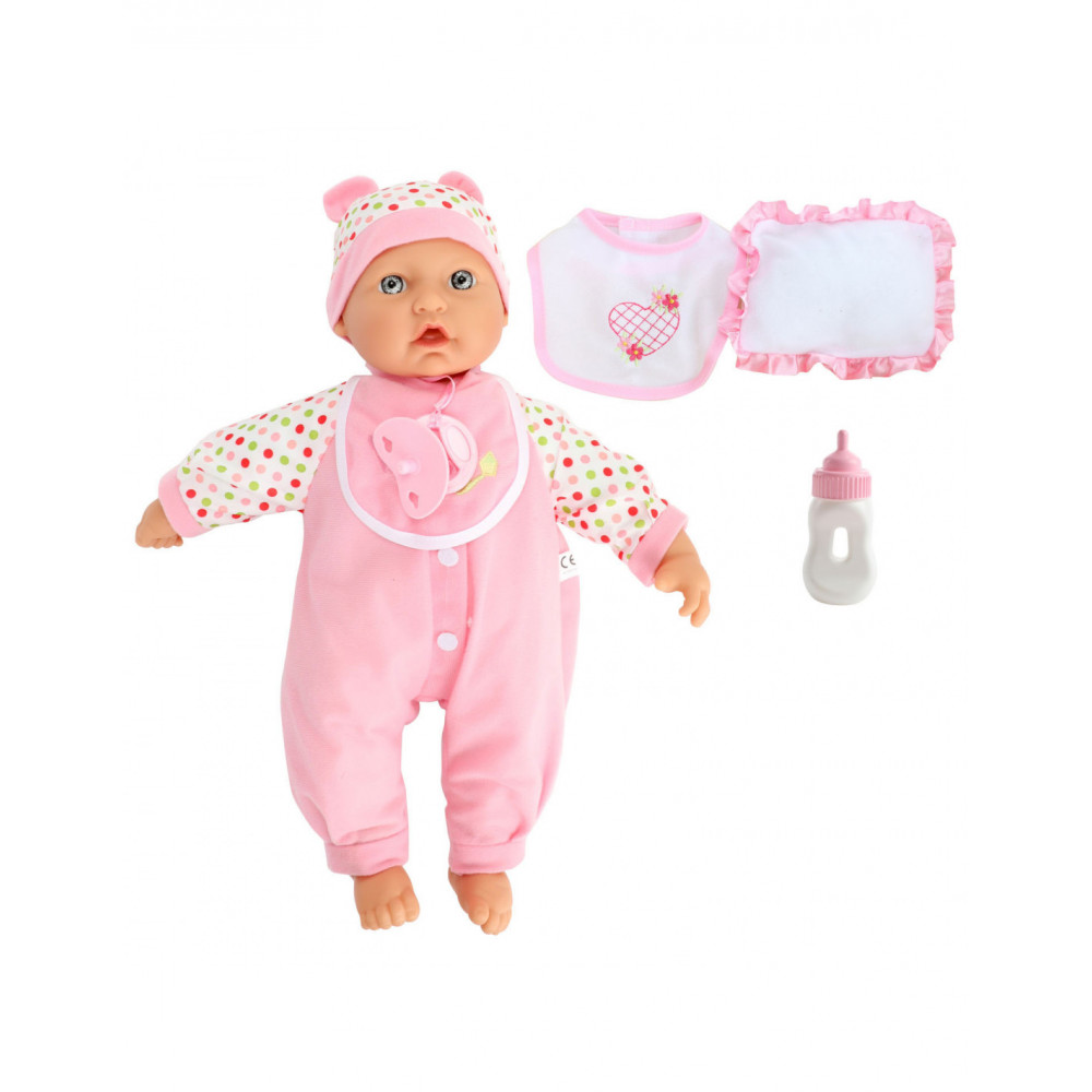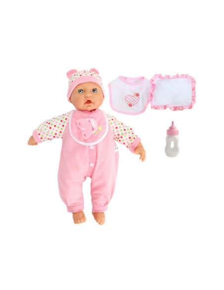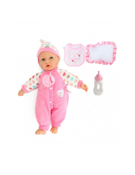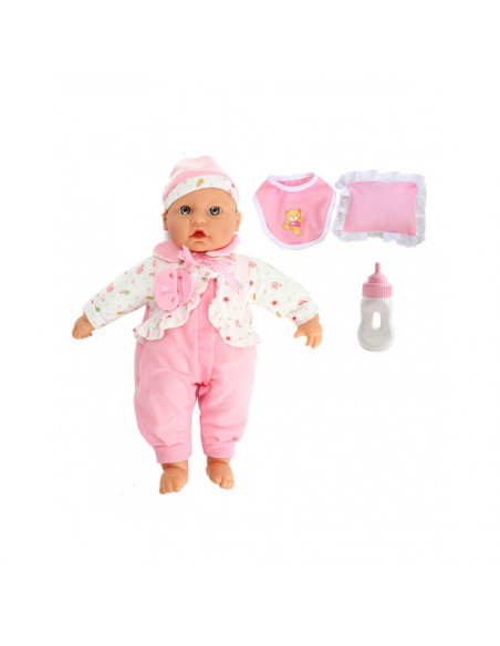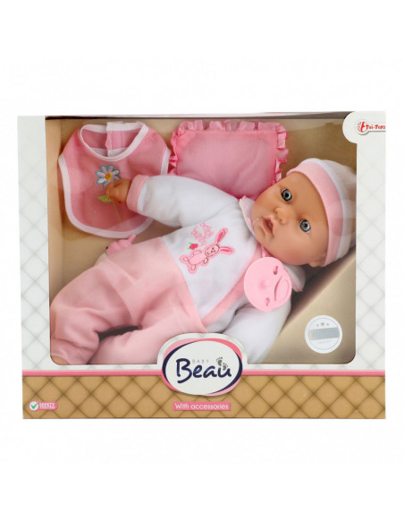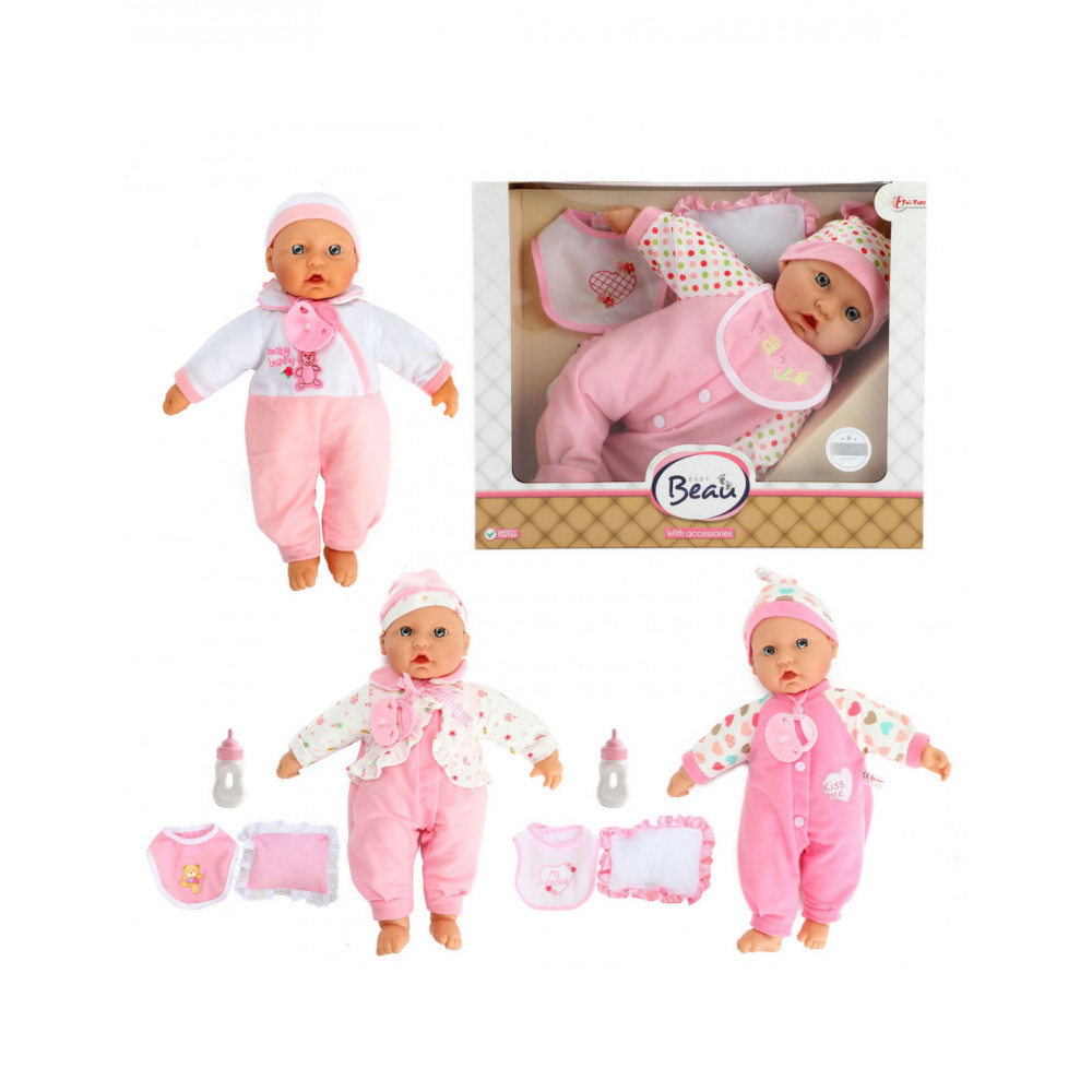 BEAU Babypop 40 cm met fles, slabbetje, kussentje en speen. 4 edities assorti. Vanaf 2 jaar.