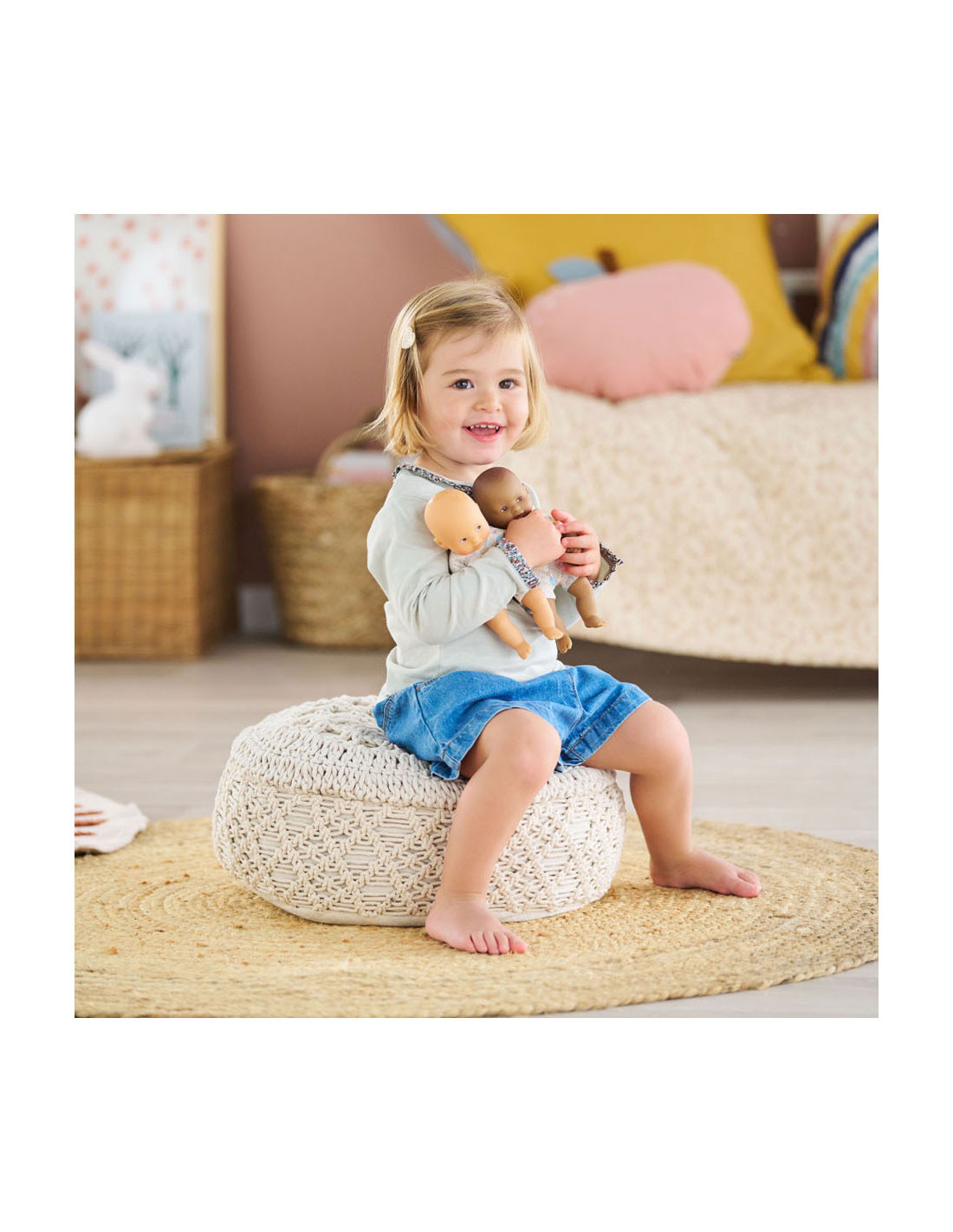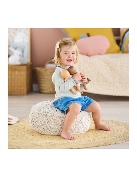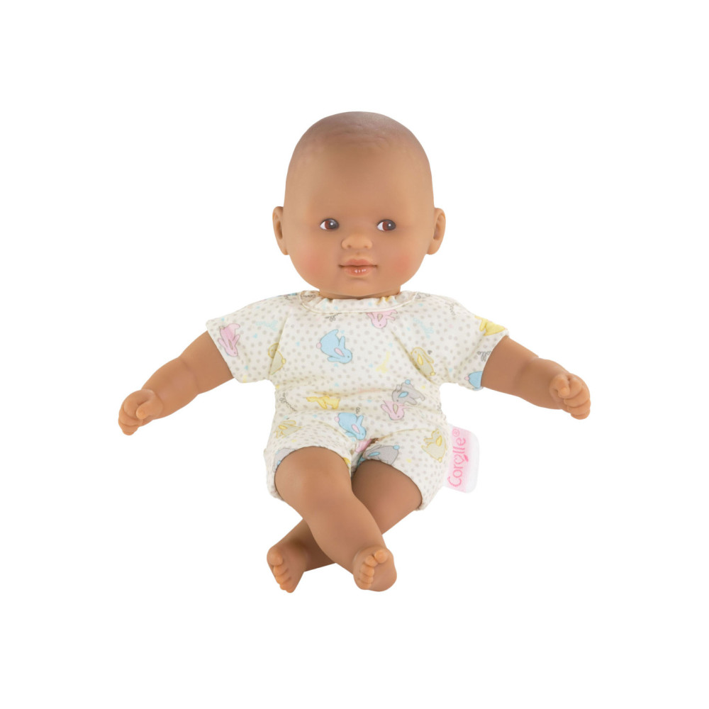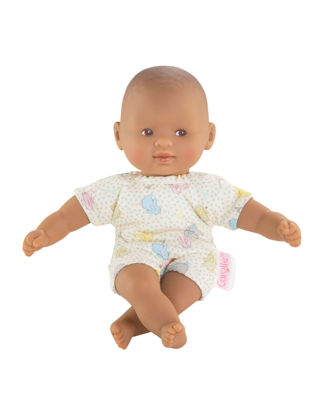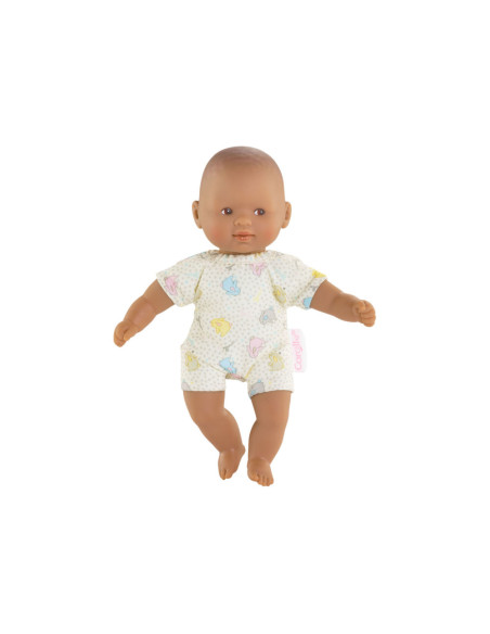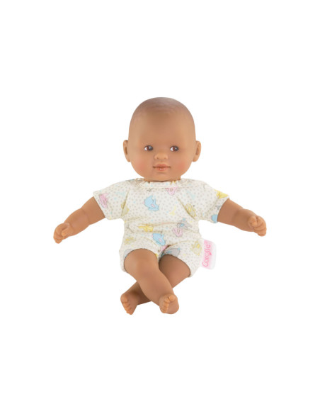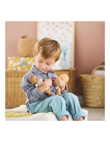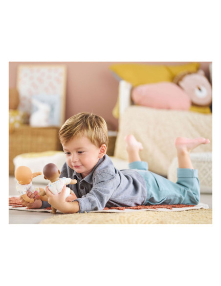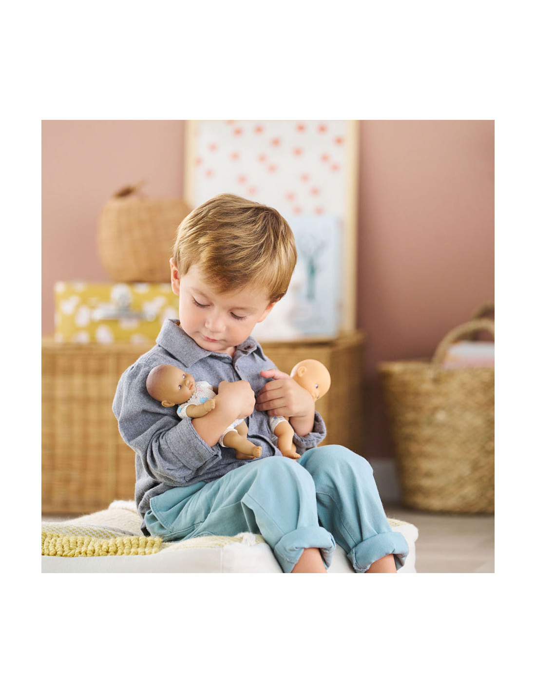 Mini Calin met bruine ogen is een minipoppetje van 20 centimeter groot dat licht is en gemakkelijk overal mee naartoe te nemen. De kleine pop heeft een lichtgetinte huid: haar gezicht, armen en benen zijn gemaakt van vinyl en hebben ook een delicate geur van vanille. Geschikt voor kinderen vanaf 18 maanden oud.