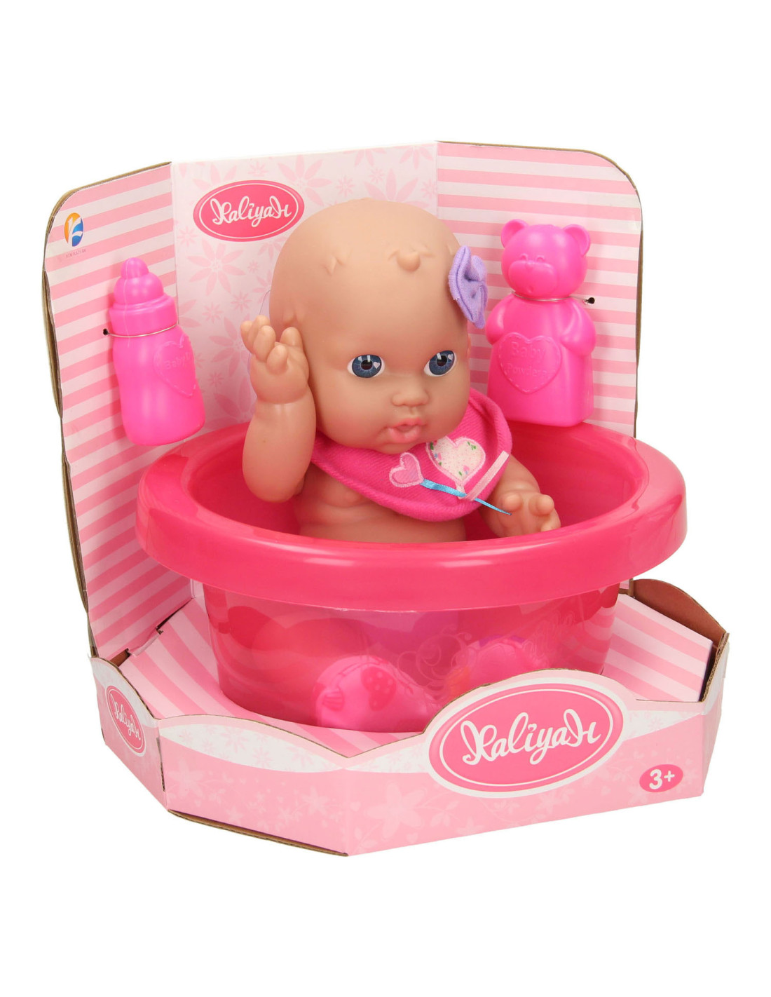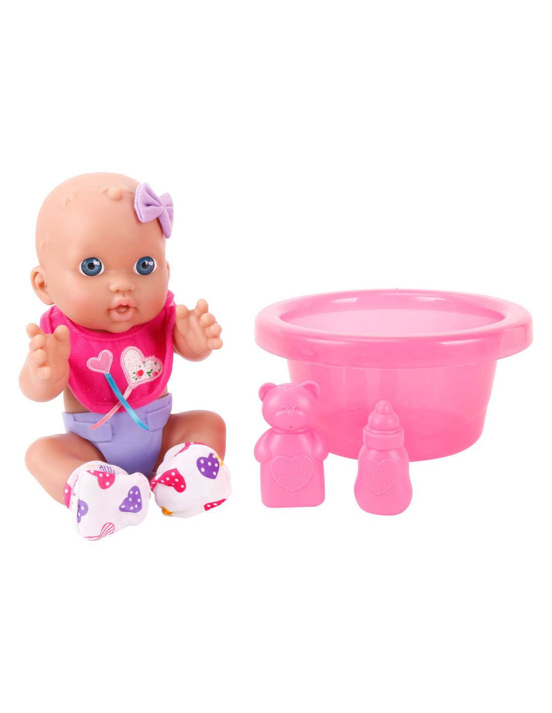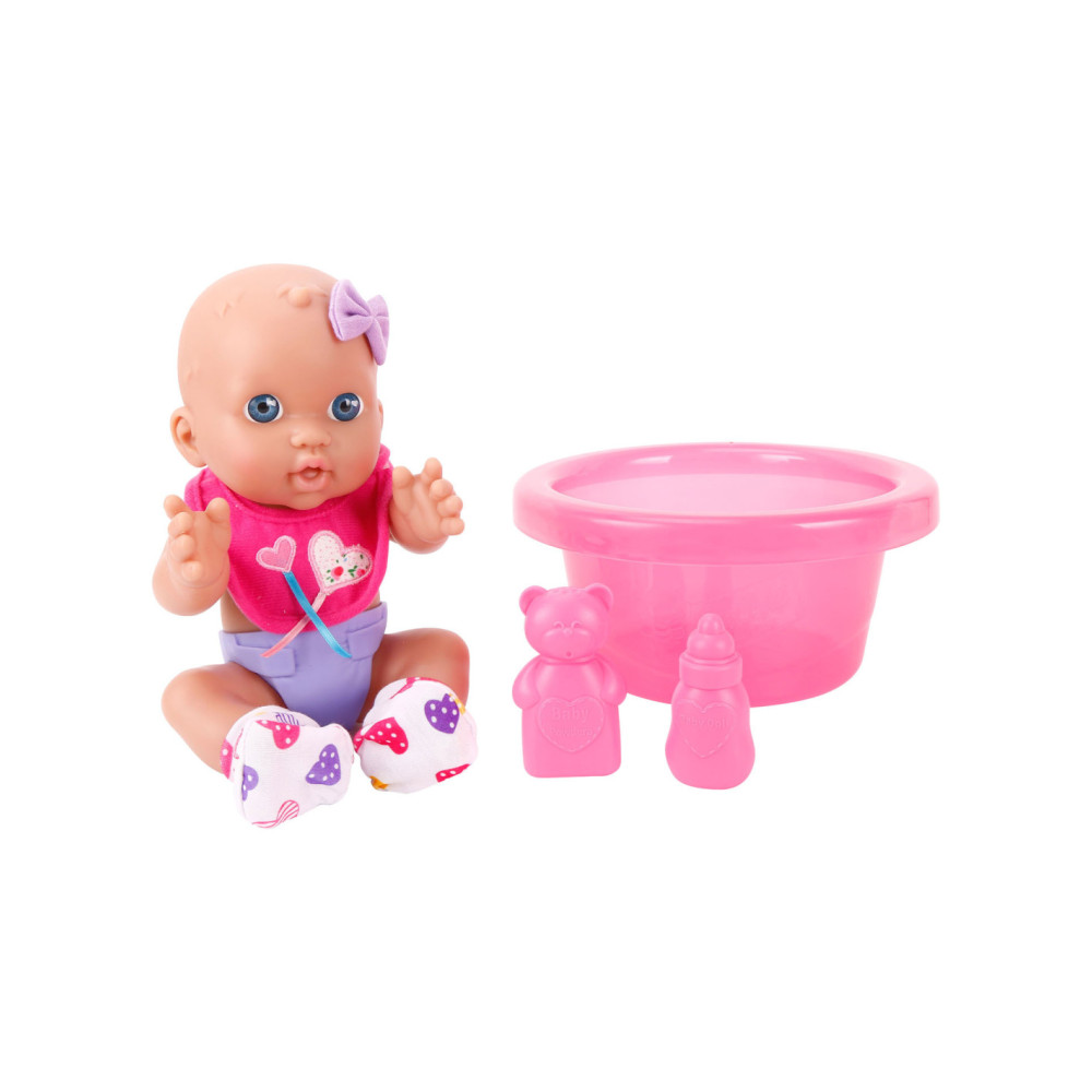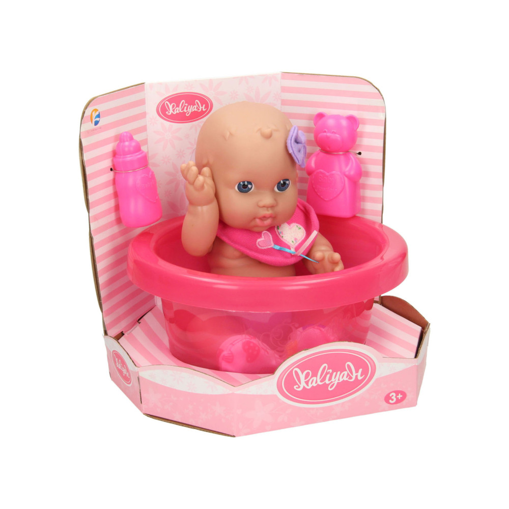Na een lange dag lekker gespeeld te hebben is het tijd om deze schattige pop in bad te doen. Pak het badje erbij en zet de pop er lekker in. Tijd om lekker te genieten! Deze set bestaat uit een pop van 33 centimeter, een roze badje, twee flesjes en kleding voor de pop. Geschikt voor kinderen vanaf 3 jaar.