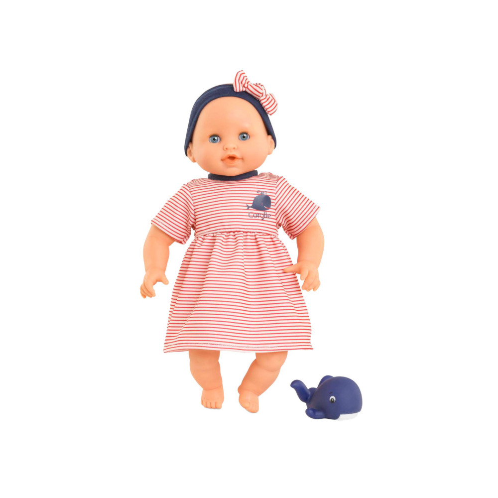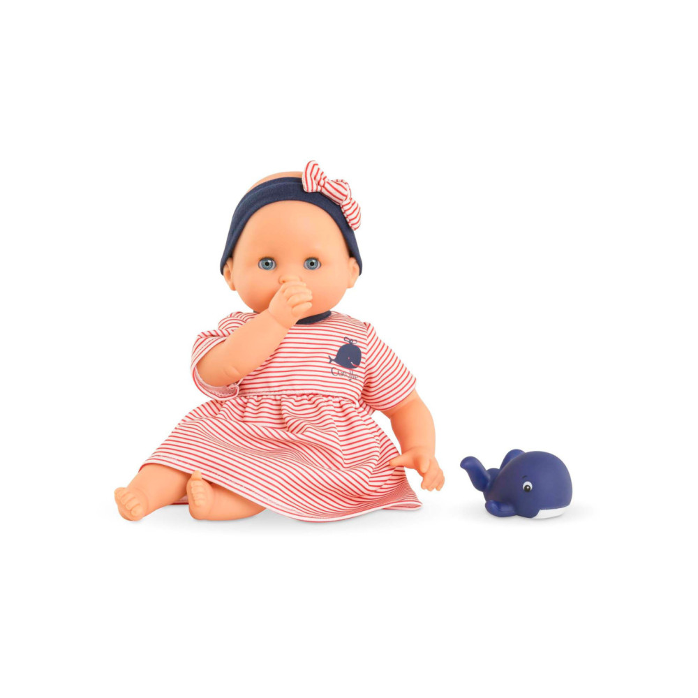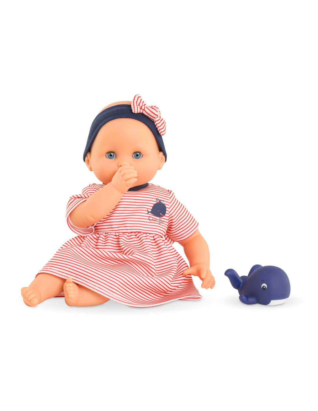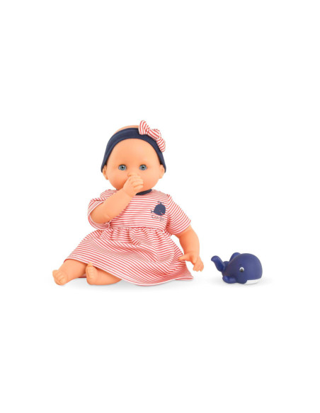 Deze lieve pop houdt ontzettend veel van zwemmen en lekker in het water spelen! Ze gaat graag met jouw spelen en zwemmen, in welk water dan ook (chloor-, zee- en badwater). Met haar schattige outfit is ze er helemaal klaar voor! En haar walvis vriendje schiet water, om de pret af te maken!
