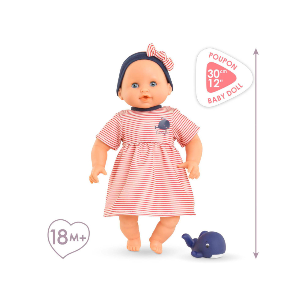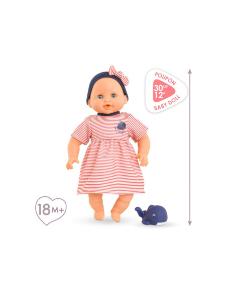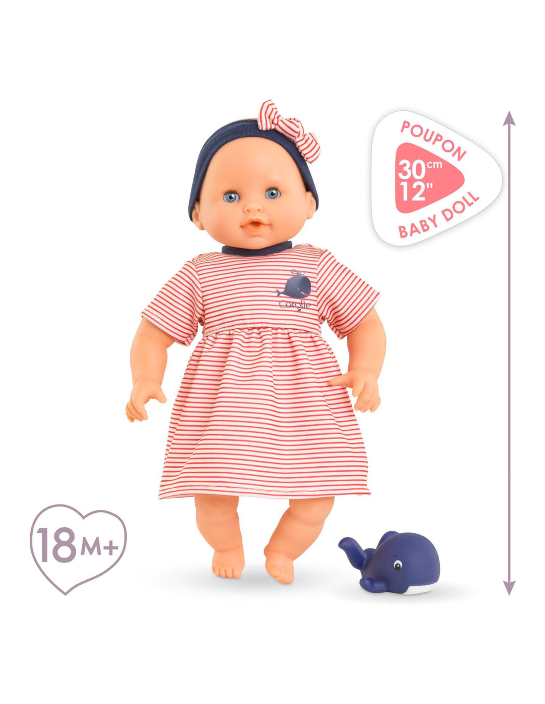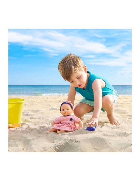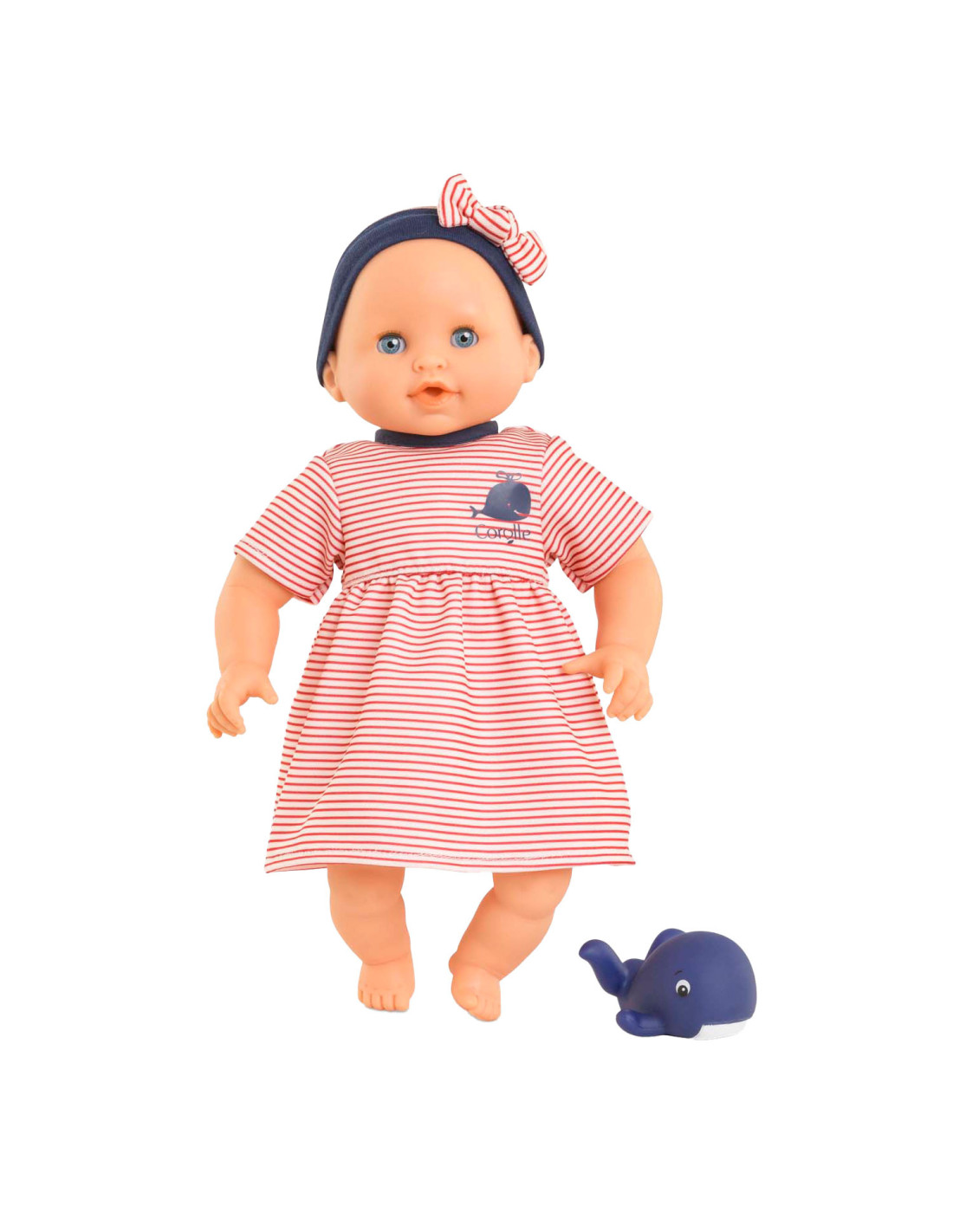 Deze lieve pop houdt ontzettend veel van zwemmen en lekker in het water spelen! Ze gaat graag met jouw spelen en zwemmen, in welk water dan ook (chloor-, zee- en badwater). Met haar schattige outfit is ze er helemaal klaar voor! En haar walvis vriendje schiet water, om de pret af te maken!