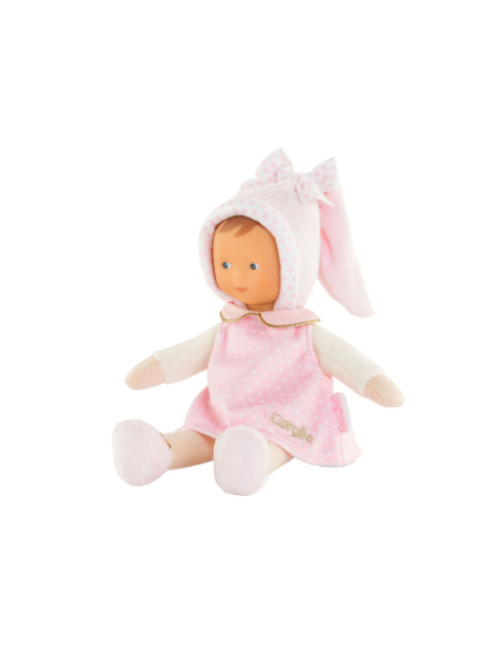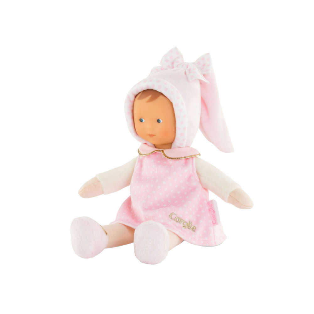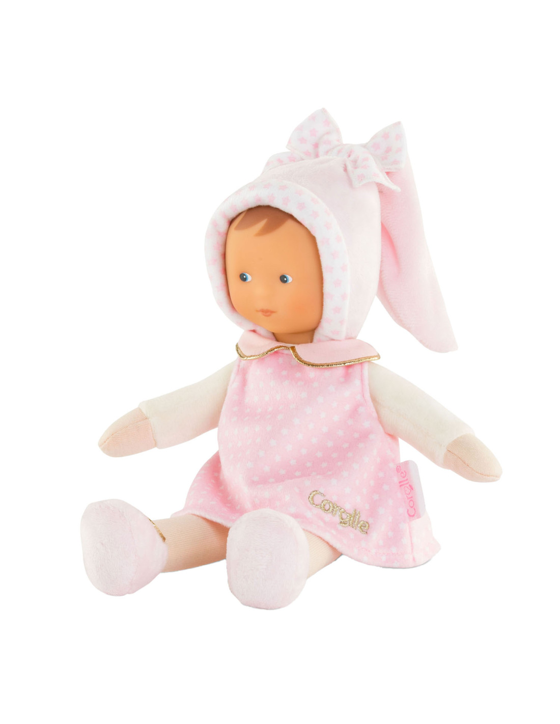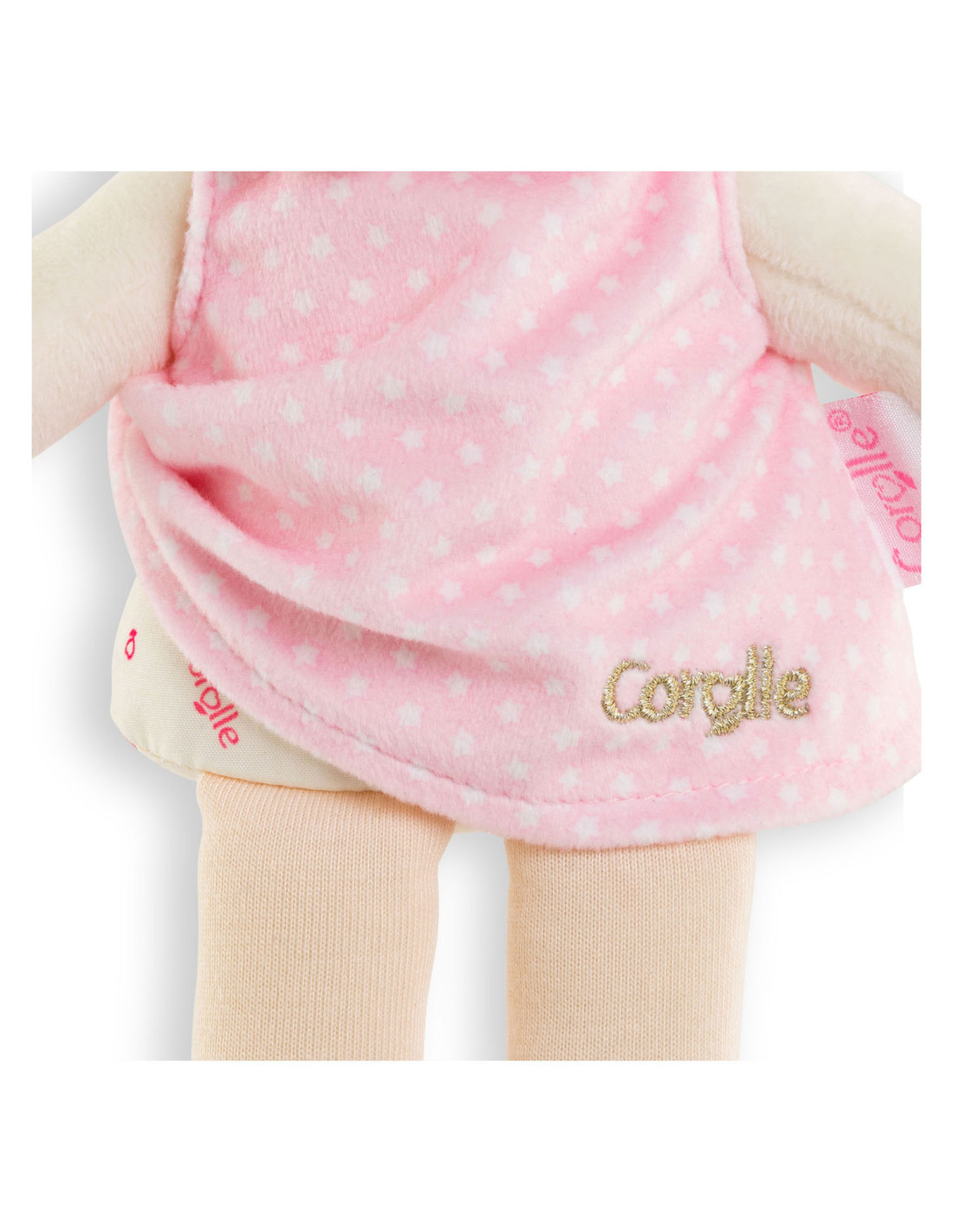 Corolle Miss Starry Dreams is een zacht knuffelpopje met een vinyl hoofdje. Ze draagt een roze sterrenjurk en heeft een typische Corolle vanillegeur. De pop is 25 cm groot en geschikt vanaf de geboorte.