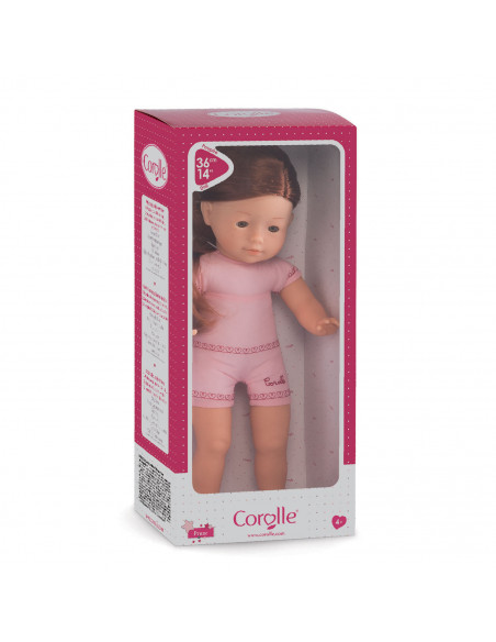 De pop Ma Corolle Babypop Prune heeft rode lange haren, hazelnootbruine ogen en een wipneusje. Lengte 36 centimeter.