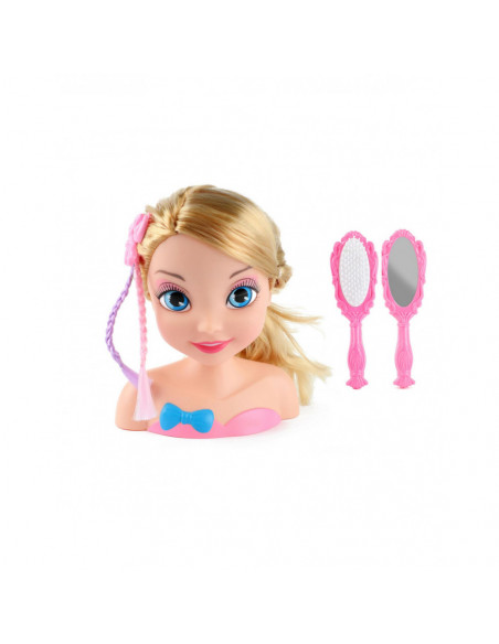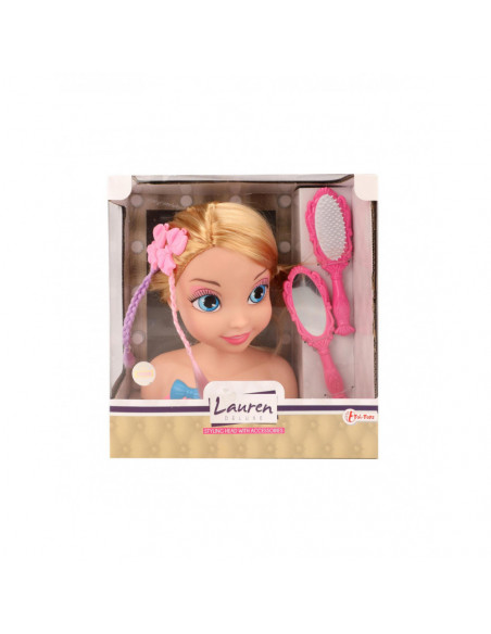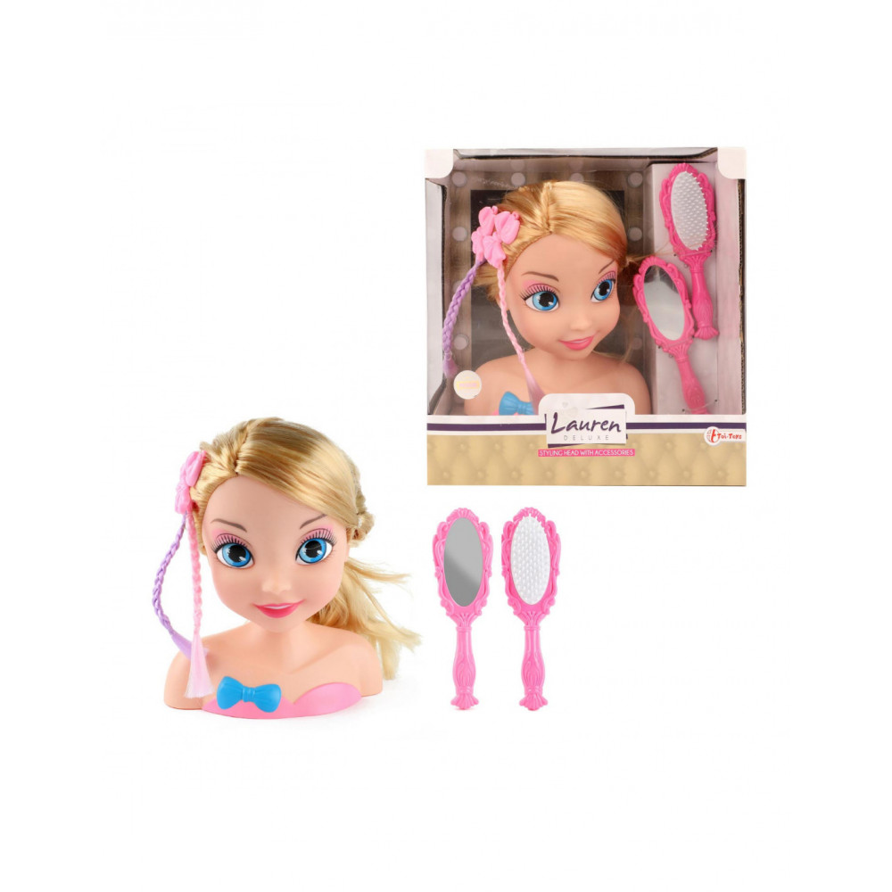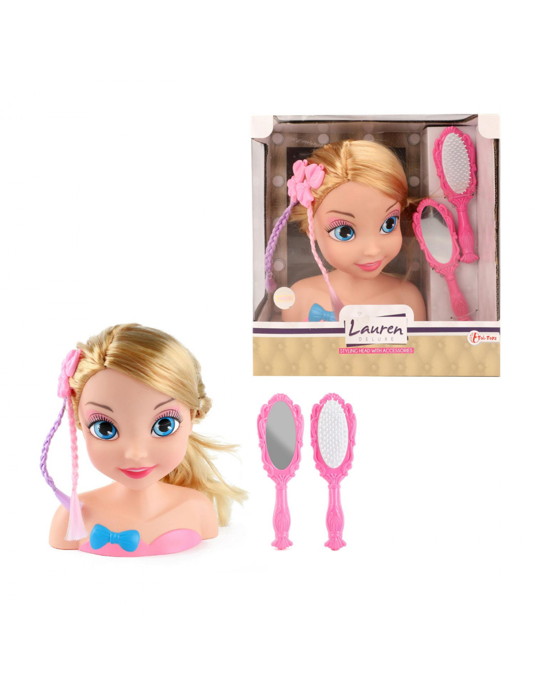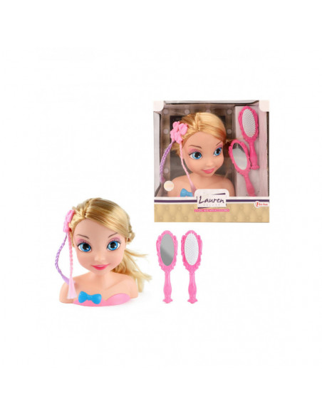 LAUREN Kaphoofd met accessoires, borstel en spiegel, blonde kappop vanaf 4 jaar.