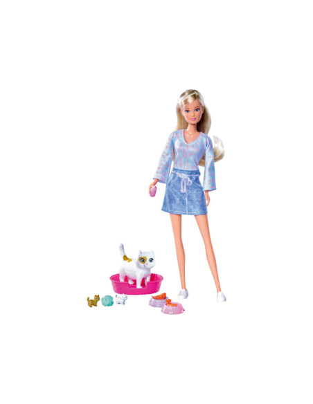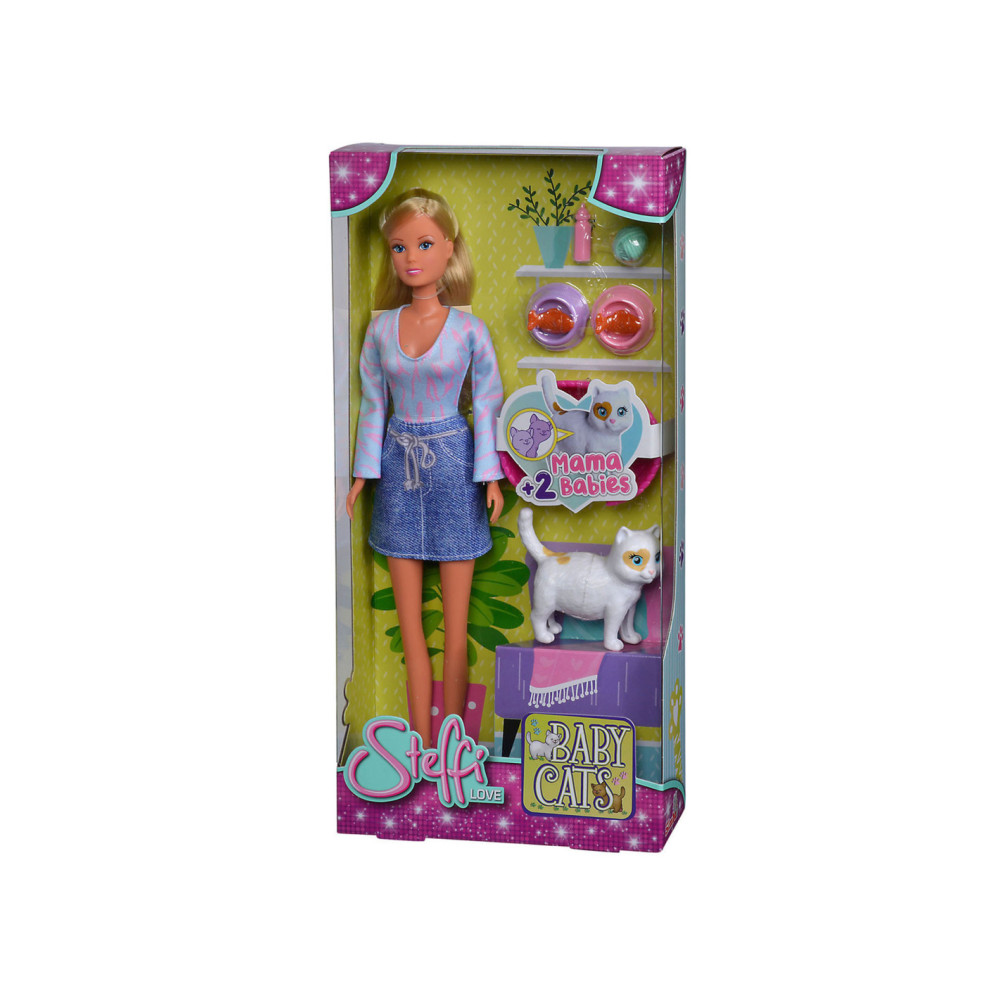 De Steffi Love modepop met kittens is een schattige speelset voor echte kattenliefhebbers. Steffi Love wordt vergezeld door lieve kittens, waardoor kinderen kunnen spelen en voor hen kunnen zorgen. Een leuke manier om te genieten van rollenspel en de liefde voor dieren te ontdekken. Geschikt vanaf 3 jaar.
