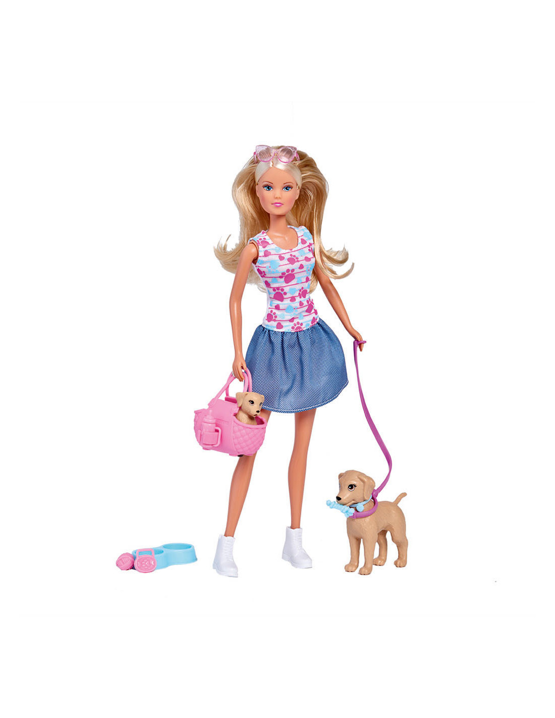 Pop Steffi Love is dol op haar puppy en vindt het helemaal geen probleem om hem uit te laten. In haar hippe handtas kan ze zo de puppy meenemen. Aan de tas kan ook een drinkflesje bevestigd worden. Deze speelset bevat ook nog andere accessoires, zoals een voederbak en hondenspeeltjes.