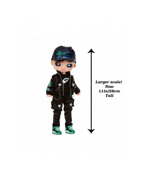 Na Na Na Surprise Teens zijn prachtige, zachte modepoppen van 28 cm met heel veel persoonlijkheid en een glamourstijl. Parker Scorch heeft zich voor zijn look laten inspireren door een draak. Hij heeft cool, zwart haar, een geprint gezichtje en geprinte kledingdetails. Hij is verpakt in een nieuwe doos met raampje, zodat je zijn hoogwaardige details goed kunt zien. Hij draagt een zwarte pet, streetwear-mode en coole gympen. Het perfecte cadeau! Er zit ook een label bij met zijn naam, verjaardag en een verhaaltje over hem erop. Verzamel alle 5 de supermooie, zachte Teens-modepoppen.