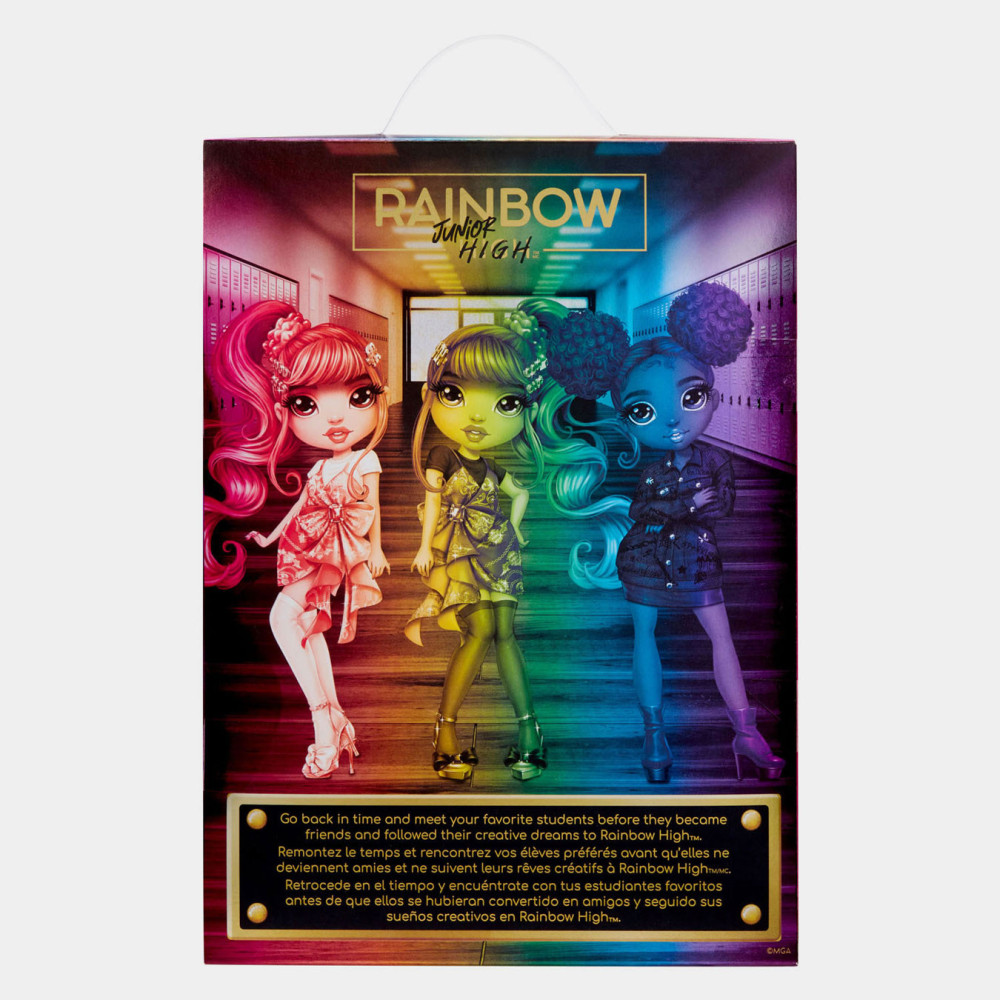 Rainbow High stimuleert creativiteit. Ga terug in de tijd en ontmoet je favoriete leerlingen voordat ze met elkaar bevriend raakten en hun creatieve dromen volgden naar Rainbow High. Elke speelset met thema is inclusief een complete poppenoutfit, een pop met een nieuw, jonger gezichtje en een rugzak van zacht vinyl om alle spulletjes voor op school in mee te nemen. Met deze speelset kunnen kinderen eindeloos veel plezier beleven en fantasierijke verhalen verzinnen.