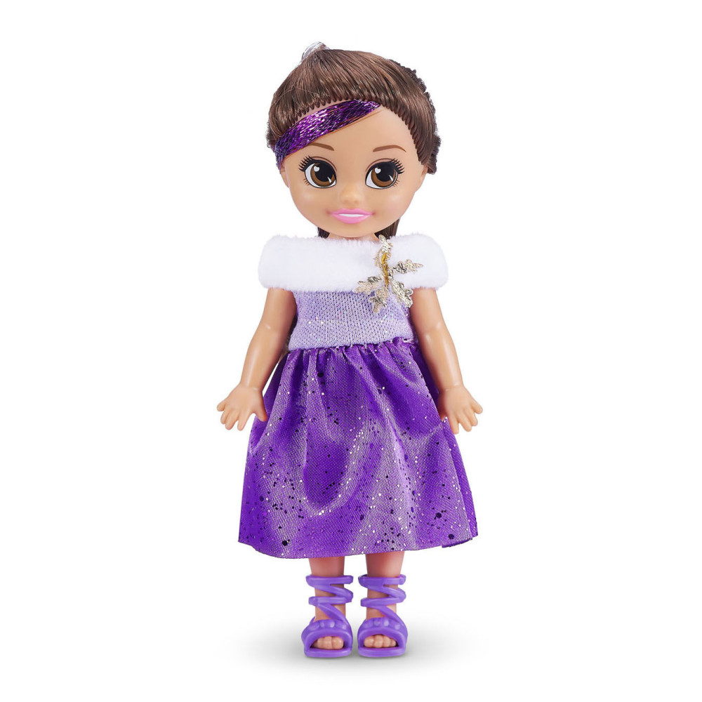 Maak kennis met de Cupcake Winter Princess Sparkle Girl! Deze betoverende mini-winterprinses komt uit een magisch winterkasteel en heeft ongelooflijke sneeuw- en ijskrachten. Elke mini-pop straalt haar unieke charme uit met glinsterende haarhighlights, gedetailleerde winterjurken met imitatiebont, en elegante bijpassende schoenen. Het lange, superzachte haar is perfect om te borstelen en te stylen, en de beweegbare ledematen maken het spelen nog leuker.