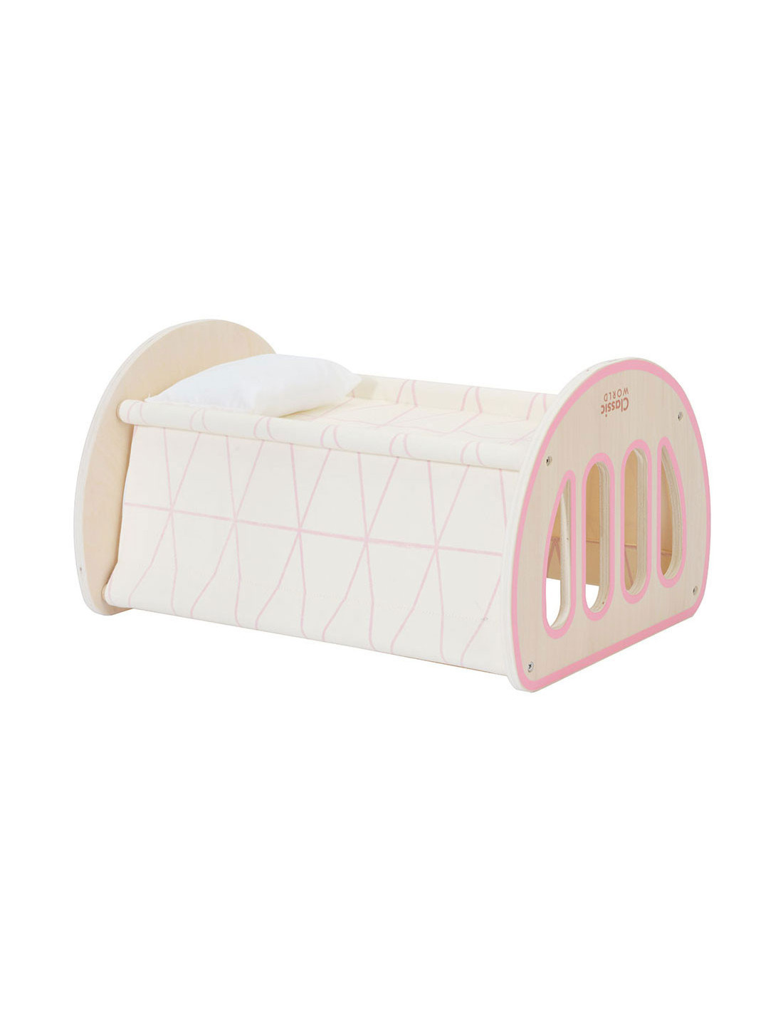 Je geliefde pop heeft eindelijk zijn eigen mooie wiegje! Laat uw kind haar favoriete pop in dit schattige ledikantje leggen en zachtjes in slaap zingen. Het houten ledikantje is artistiek vervaardigd en gebouwd om lang mee te gaan. Met dit schommelende poppenwiegje zullen uw kinderen genieten van fantasiespelletjes en hun fantasie laten inspireren en ontwikkelen.