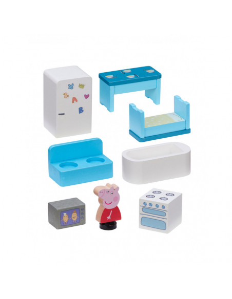Het prachtige, kleurrijke familiehuis is gevuld met verschillende accessoires: een Peppa Pig figuur, een bad, een oven, een koelkast, een televisie en een bank. Welke activiteit ga jij als eerste ondernemen met Peppa Pig? Spelen met een poppenhuis stimuleert het rollenspel en de creativiteit. Geschikt vanaf 3 jaar.
