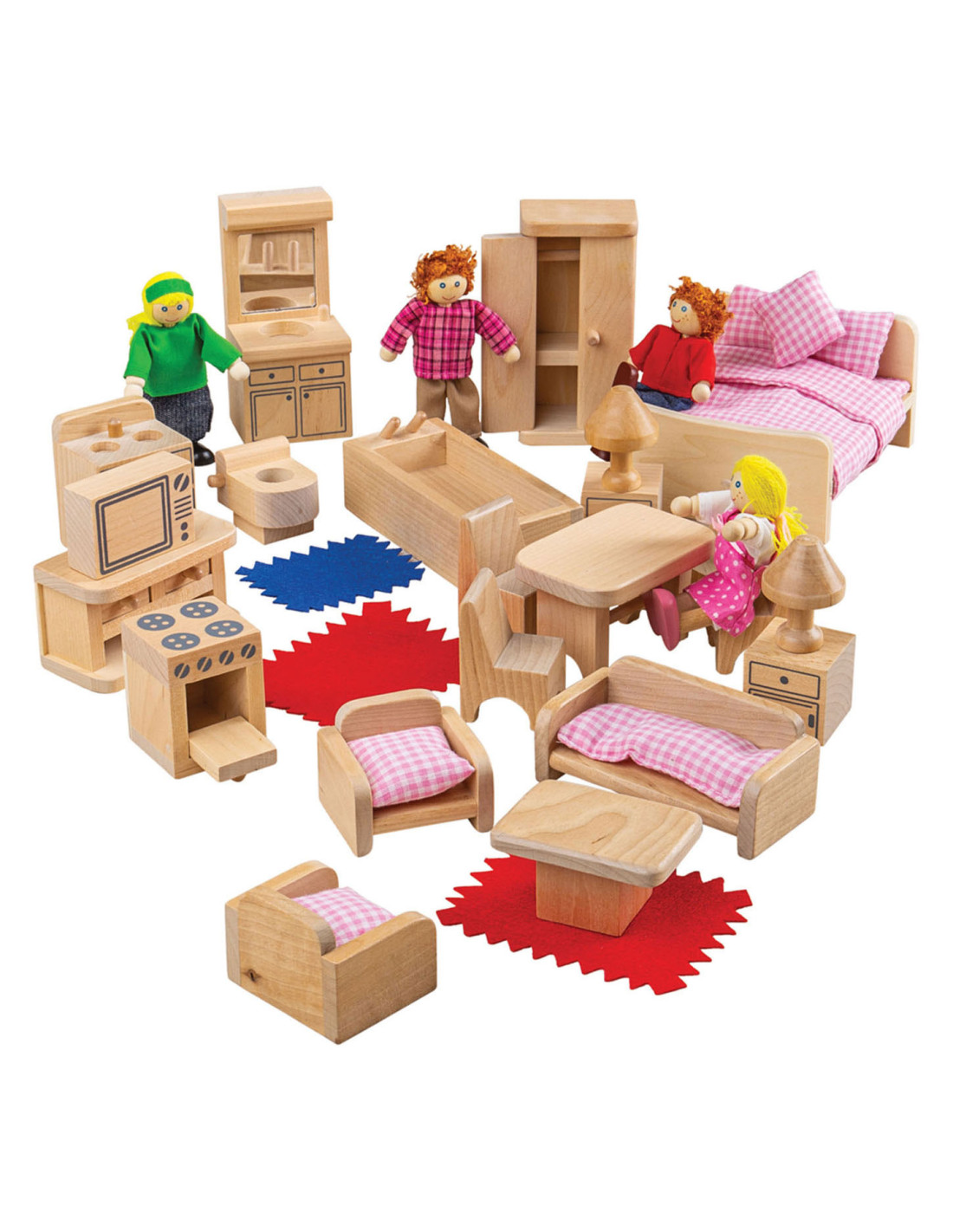 Perfect formaat voor de houten poppenhuizen van Bigjigs. Bestaat uit 26 onderdelen. Gemaakt van hoogwaardige, verantwoorde materialen. Voldoet aan de huidige Europese veiligheidsnormen.
