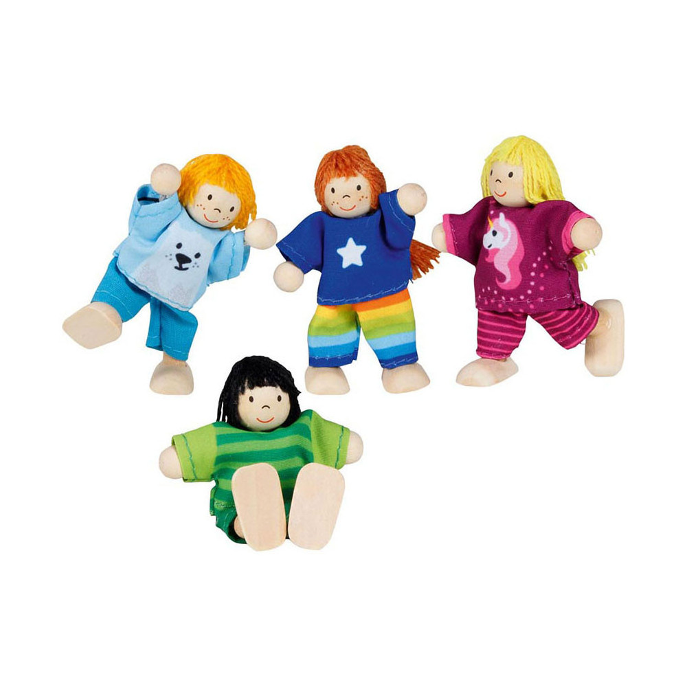 De houten poppen zijn flexibel. Ze kunnen zitten en staan en maken het spel levendiger. Ze passen in alle Goki poppenhuizen.