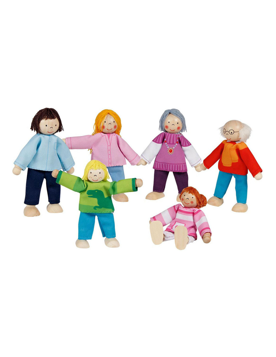 Buigzame poppenfamilie met drie generaties: de liefdevol vormgegeven houten figuren zijn gemakkelijk te verplaatsen en kunnen zowel staan als zitten. Ze passen in elk Goki-poppenhuis en brengen spel tot leven. Creativiteit en vrij spel worden aangemoedigd en de verbeelding wordt gestimuleerd om rollen te spelen. Met broers en zussen en vrienden worden sociale interacties nagebootst en geoefend door alledaagse huiselijke taferelen na te spelen.
