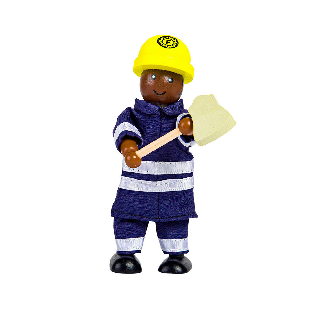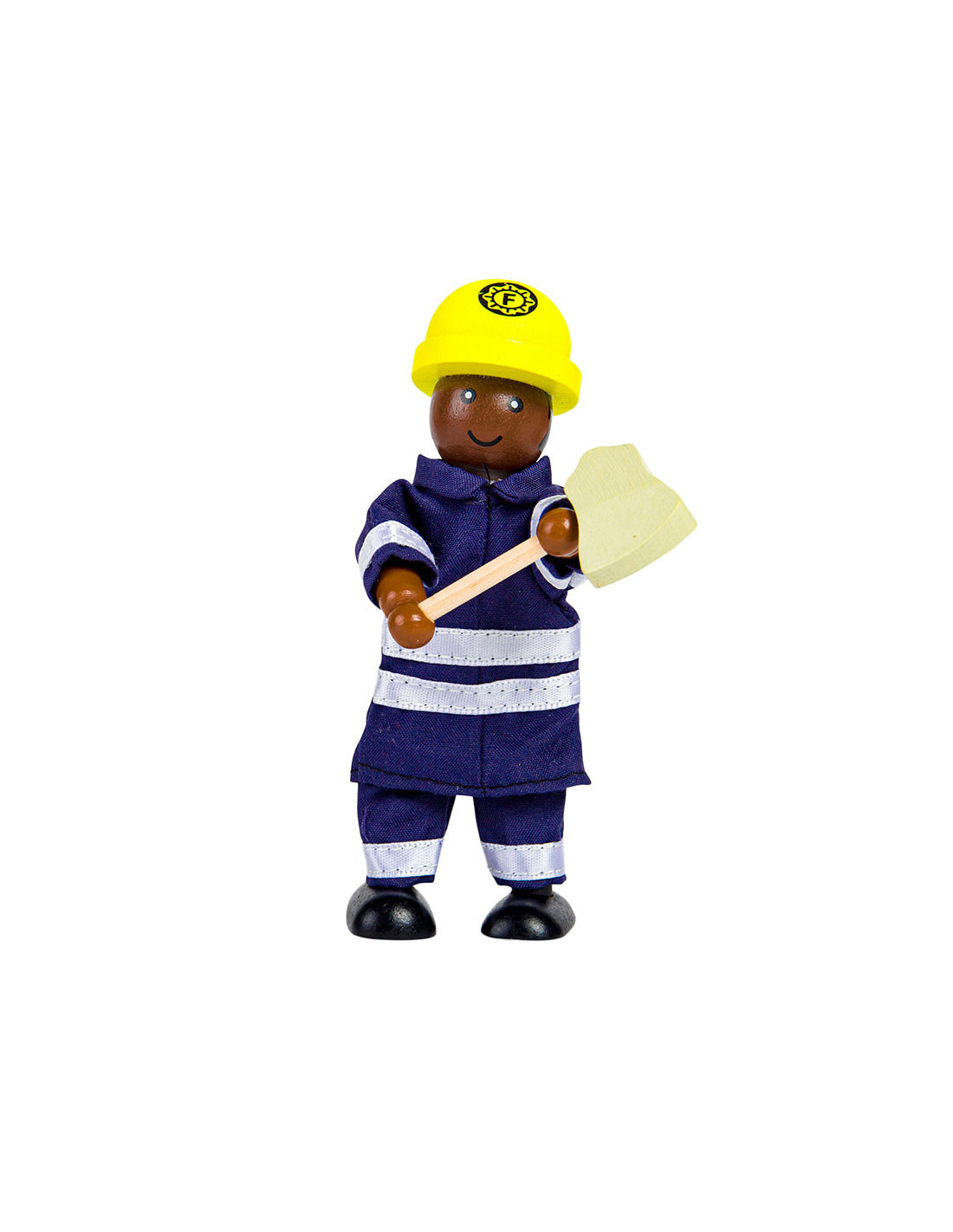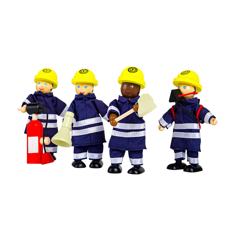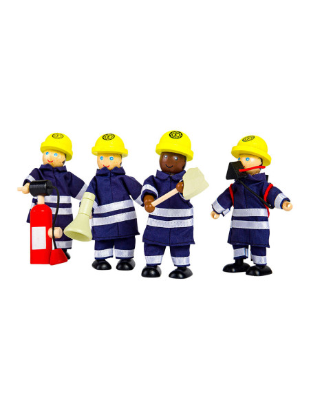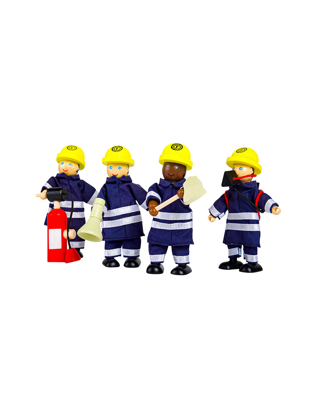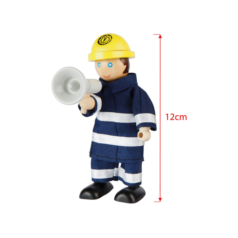 Brandweerlieden set bestaat uit: 4x brandweerfiguren met poseerbare armen en benen en elk van de figuren kan staan of zitten. De houten poppen zijn 12 cm hoog. Gemaakt van hoogwaardige, verantwoorde materialen. Geschikt voor kinderen vanaf 3 jaar oud.
