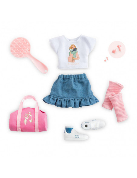 Een leuke romantische outfit voor jouw Corolle Girls pop. Set bestaat uit een wit shirt met opdruk, een spijkerrokje, roze oorbellen, roze beenwarmers, roze borstel, roze handtas en witte sneakers. Pop niet inbegrepen. Geschikt voor kinderen vanaf 4 jaar oud.