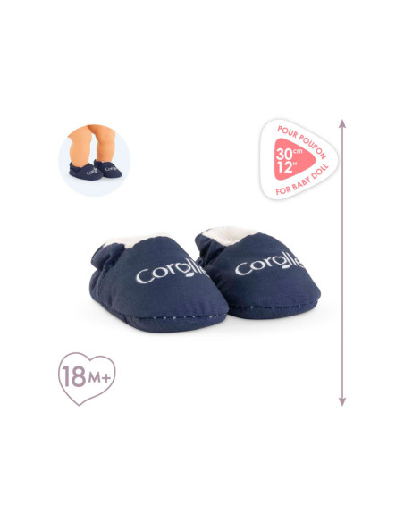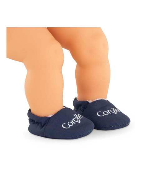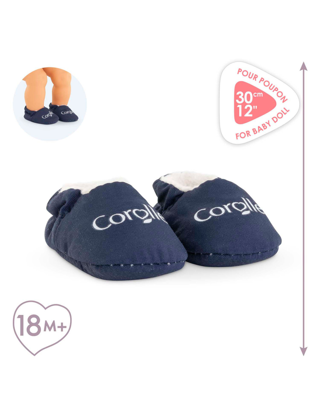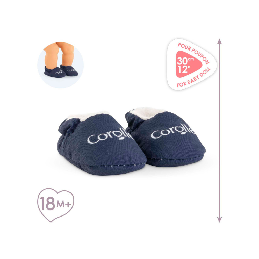 Niets houdt de voetjes van je babypop zo lekker warm als deze schattige marineblauwe slofjes! Ze zijn onmisbaar voor kleine poppen van 30 cm!
