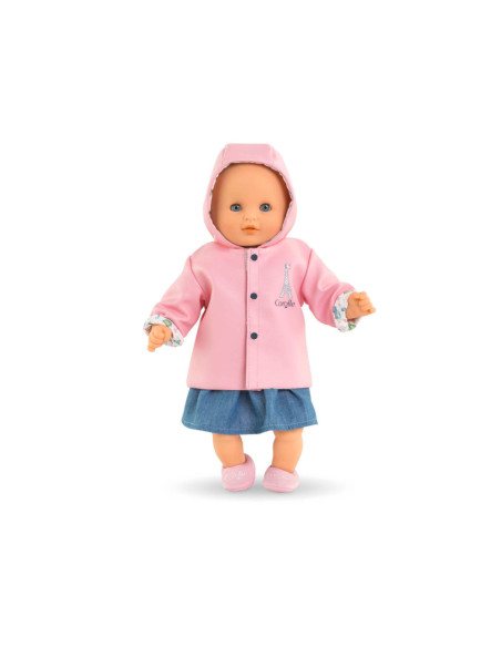 Het regent, het is nat... De Weekend in Parijs omkeerbare regenjas is ideaal om kleine poppen van 30 cm te beschermen tegen slecht weer! De voering van de regenjas is volledig bedekt met de exclusieve stof uit de collectie Week-end à Paris, met talrijke knipogen naar de hoofdstad van Frankrijk. Op de borst is een zeefdruk van de Eiffeltoren te zien, wat een typisch Parijs tintje geeft.