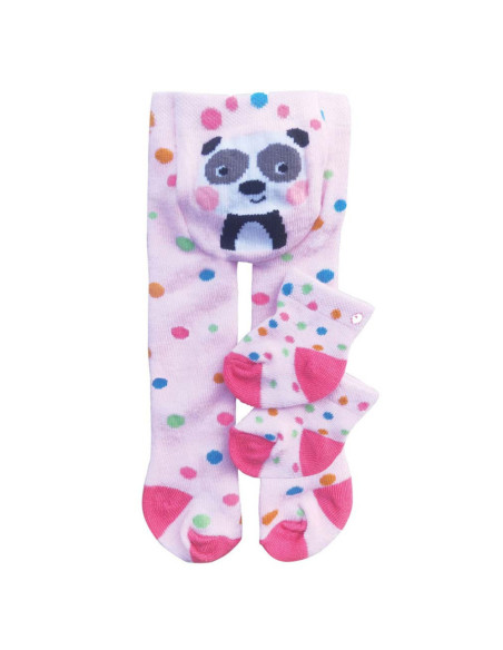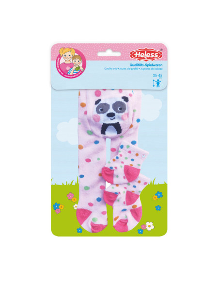 De kleurrijke poppenmaillot “Funny Animals” met sokken van Heless zorgen met hun schattige dierenmotieven en vrolijke patronen altijd voor een goed humeur. De maillot en sokken zijn roze gekleurd, met gekleurde stippen en een panda erop afgebeeld. Door de goede pasvorm van de maillot is er ook voldoende ruimte voor luiers. De panty's en sokken zijn zeer elastisch en kunnen daardoor gemakkelijk aan- en uitgetrokken worden door een grote verscheidenheid aan poppen. Een kleurrijk basisstuk dat elke poppenoutfit opfleurt. Panty's en sokken passen bij de meeste poppen van 28 tot 35 cm op de markt. Ze zijn ook verkrijgbaar in een andere uitvoering voor poppen van 35 tot 45 cm (artikelnummer 1520378A).