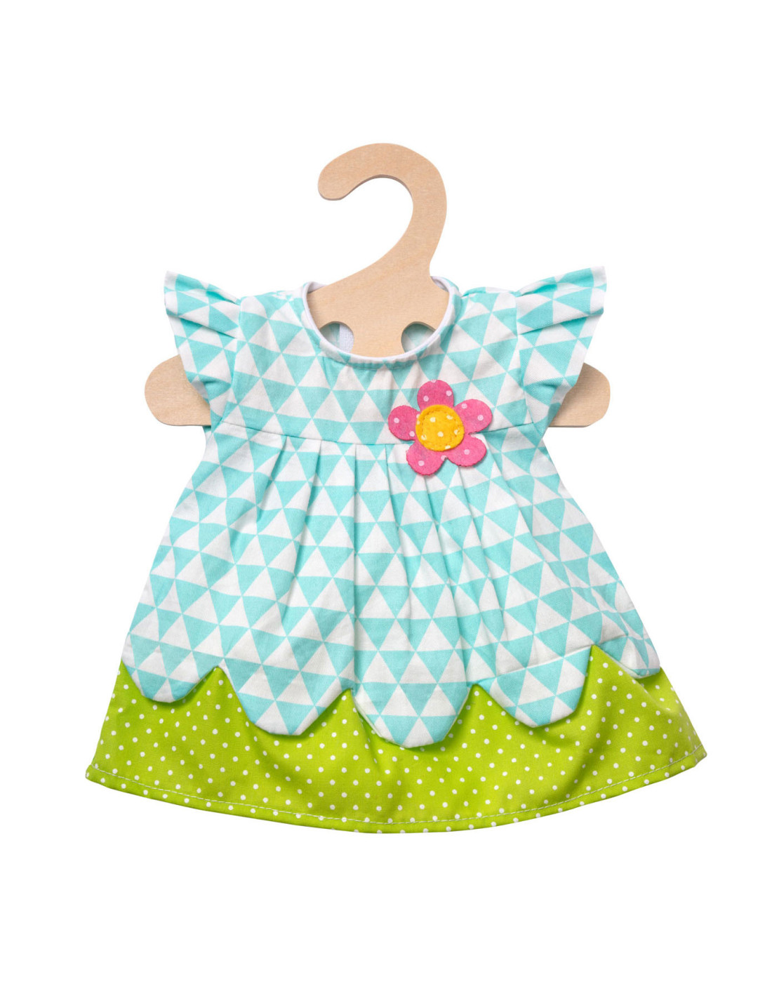Met deze kleurige jurk komt jouw pop de zomer wel door. De jurk is voorzien van een bloemapplicatie op de voorkant. Geschikt voor poppen van 28 tot 35 cm.