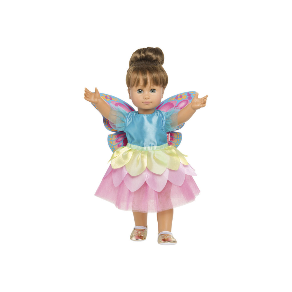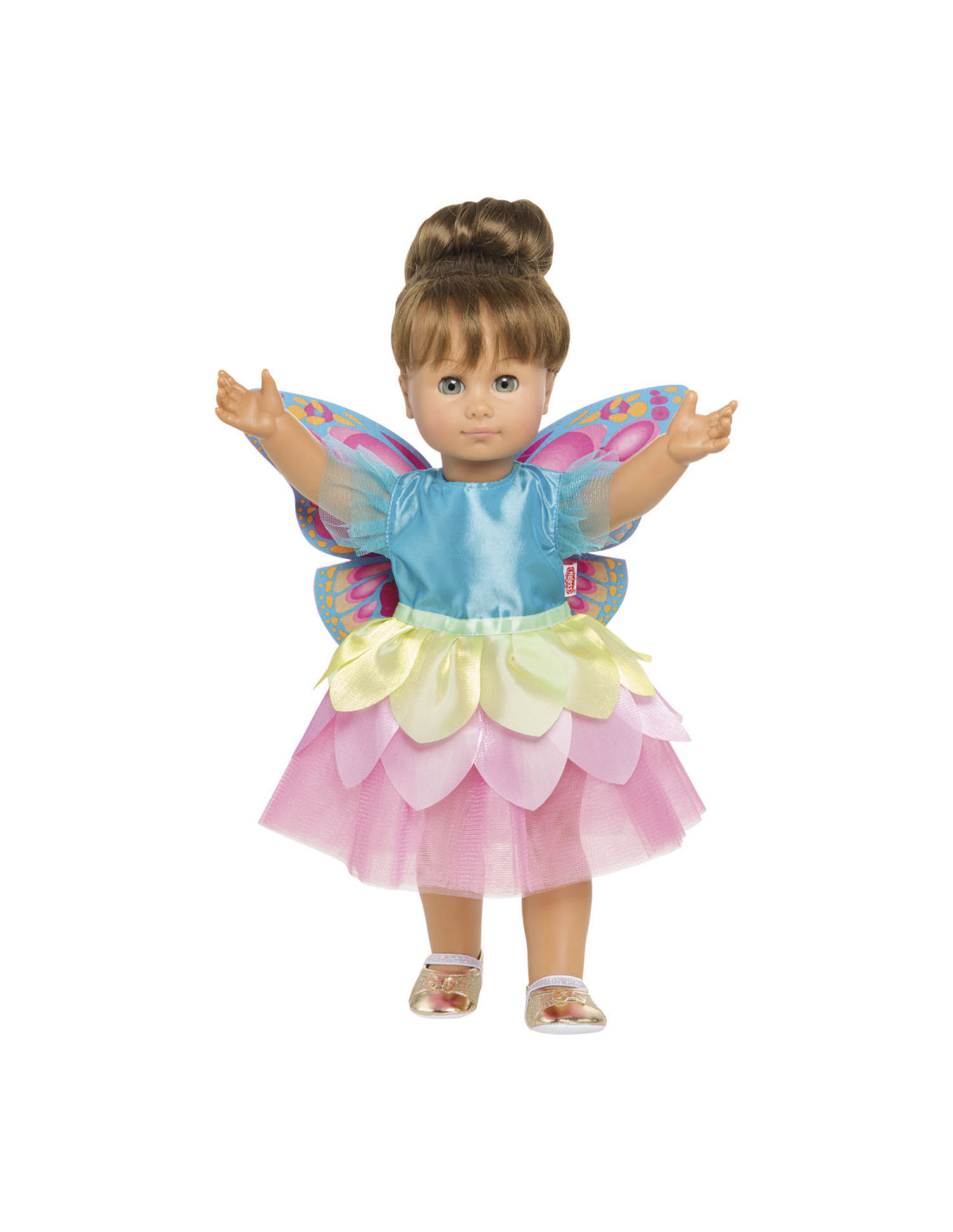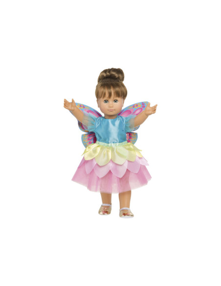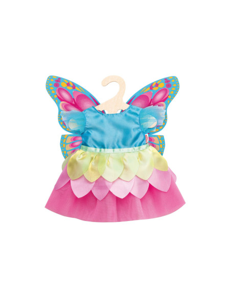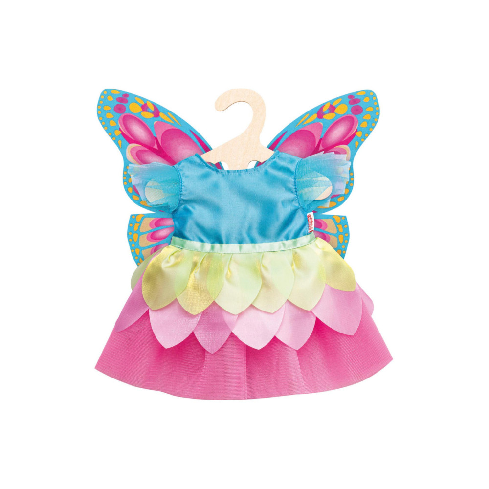Verkleed jouw pop als een fee! Aan dit poppenjurkje met mooie kleuren zijn twee fleurige vleugeltjes aan de achterkant bevestigd. Geschikt voor poppen van 28 tot 35 centimeter.