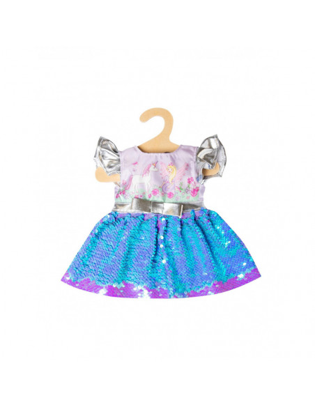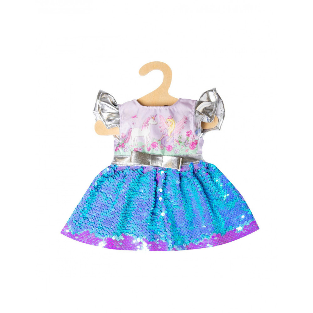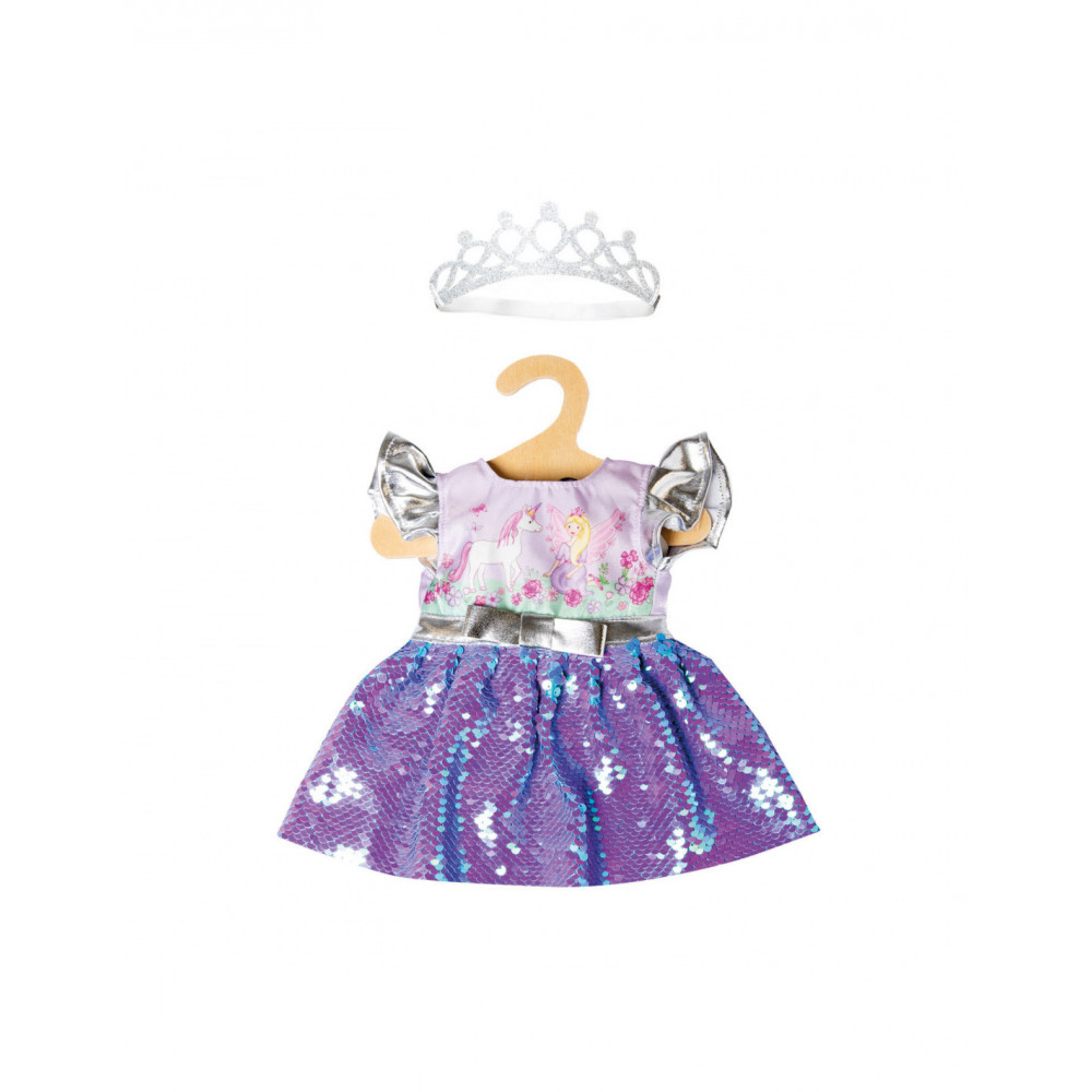 Poppenjurk Fee en Eenhoorn met Sequins en Kroon 28-35 cm