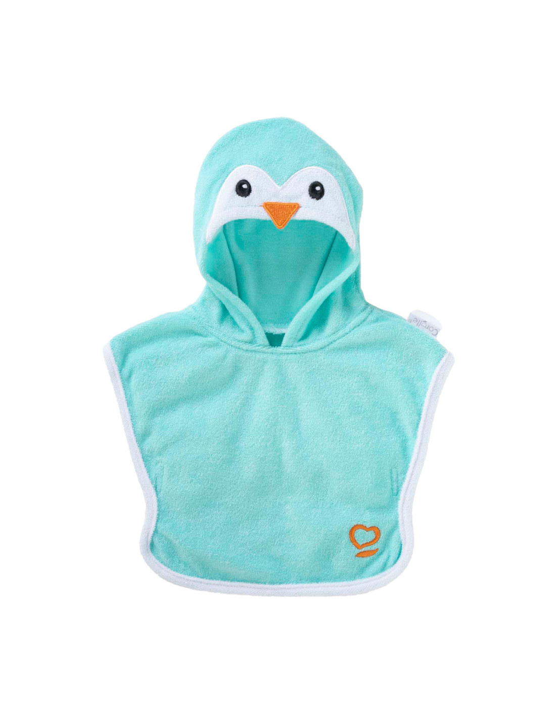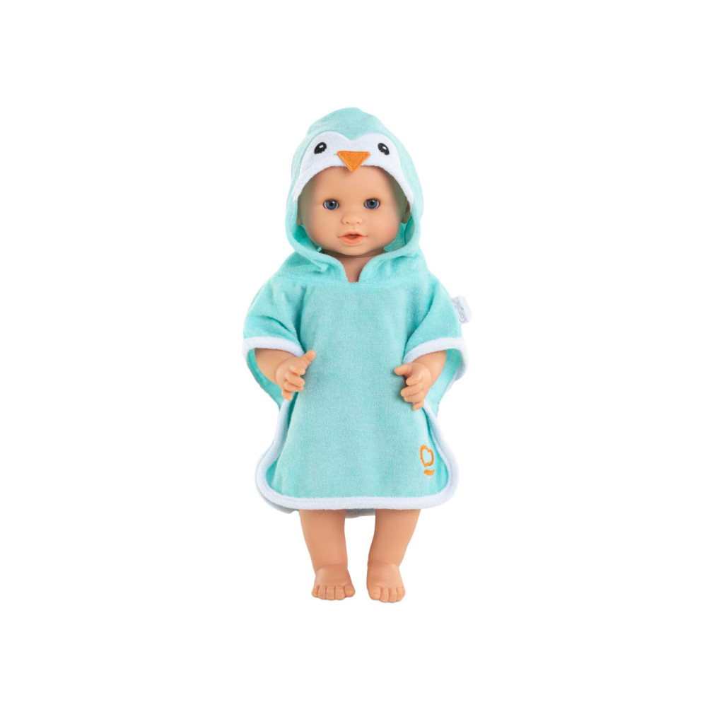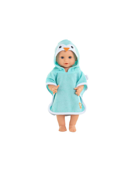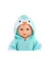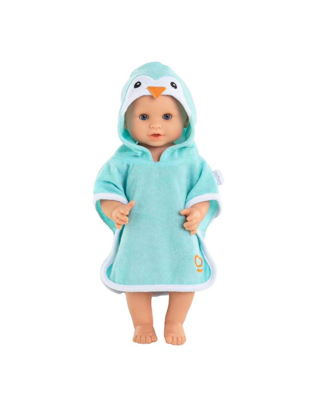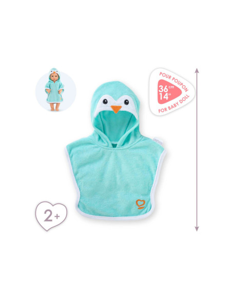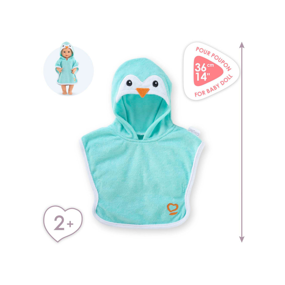 Deze leuke badcape met capuchon in de vorm van een pinguïnkop droogt en verwarmt de kleine 36 cm grote Corolle Badpoppen en Corolle Bébé Calin poppen na het badderen.