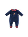 Mooie details versterken deze marineblauwe pyjama: gouden accenten om de outfit op te fleuren, marineblauwe en rode geruite stof en een glinsterende zeefdruk van een kleine teckel in zijn geruite jasje.