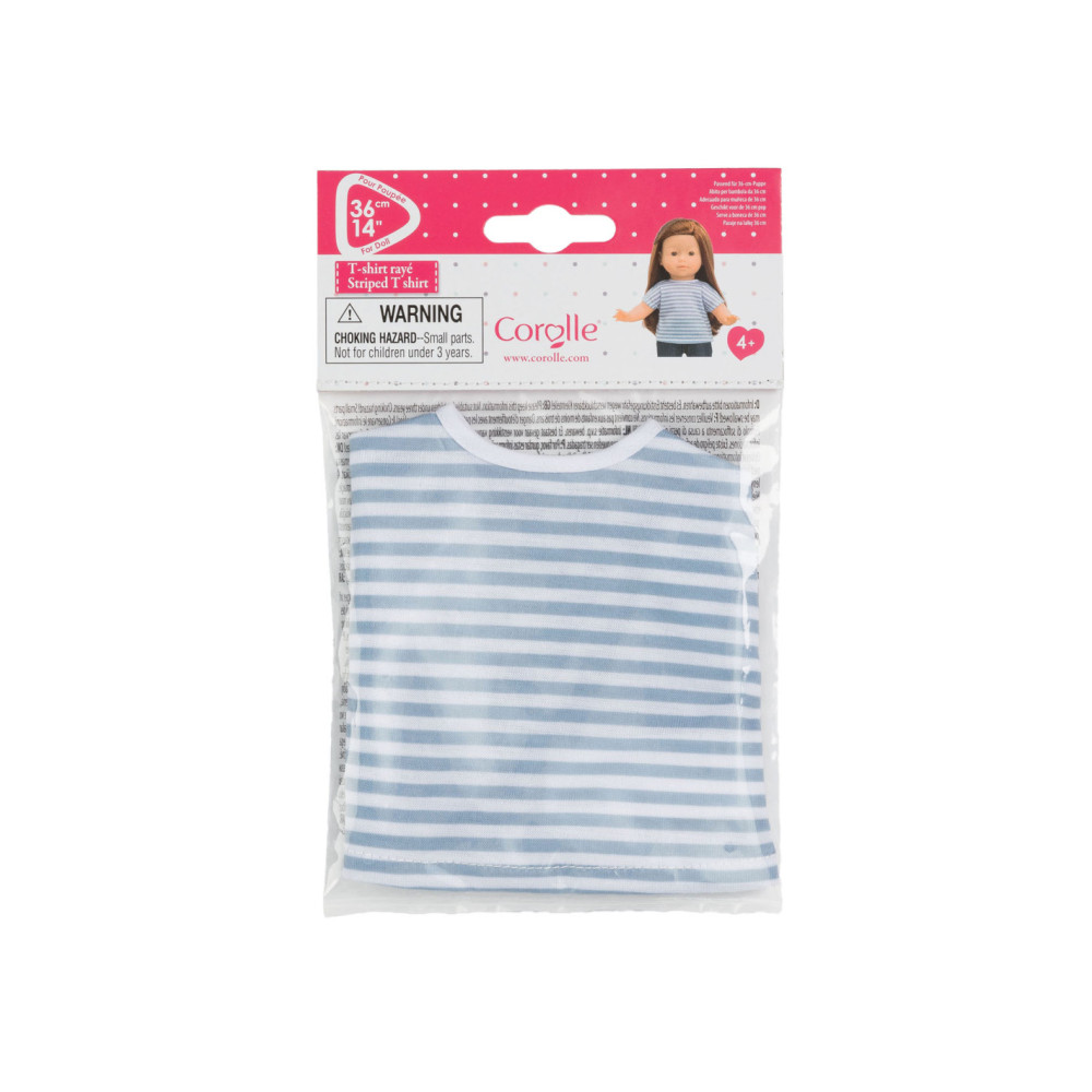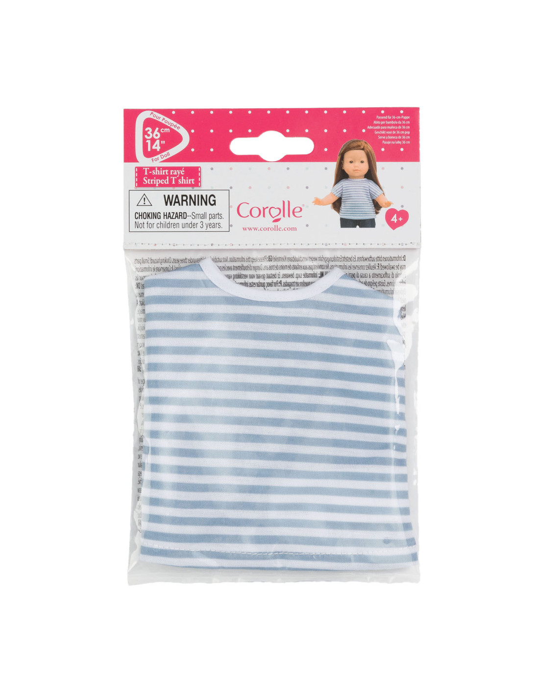 Blauwwit gestreept shirt voor poppen van 36 centimeter. Geschikt voor kinderen vanaf 4 jaar oud.