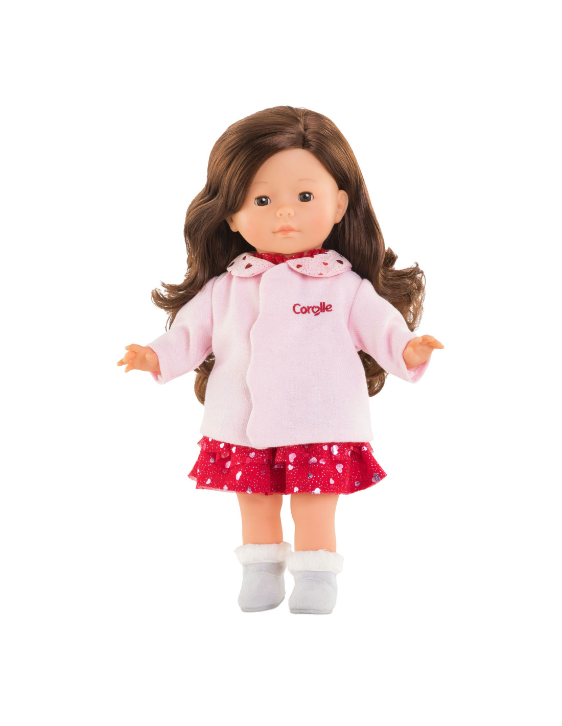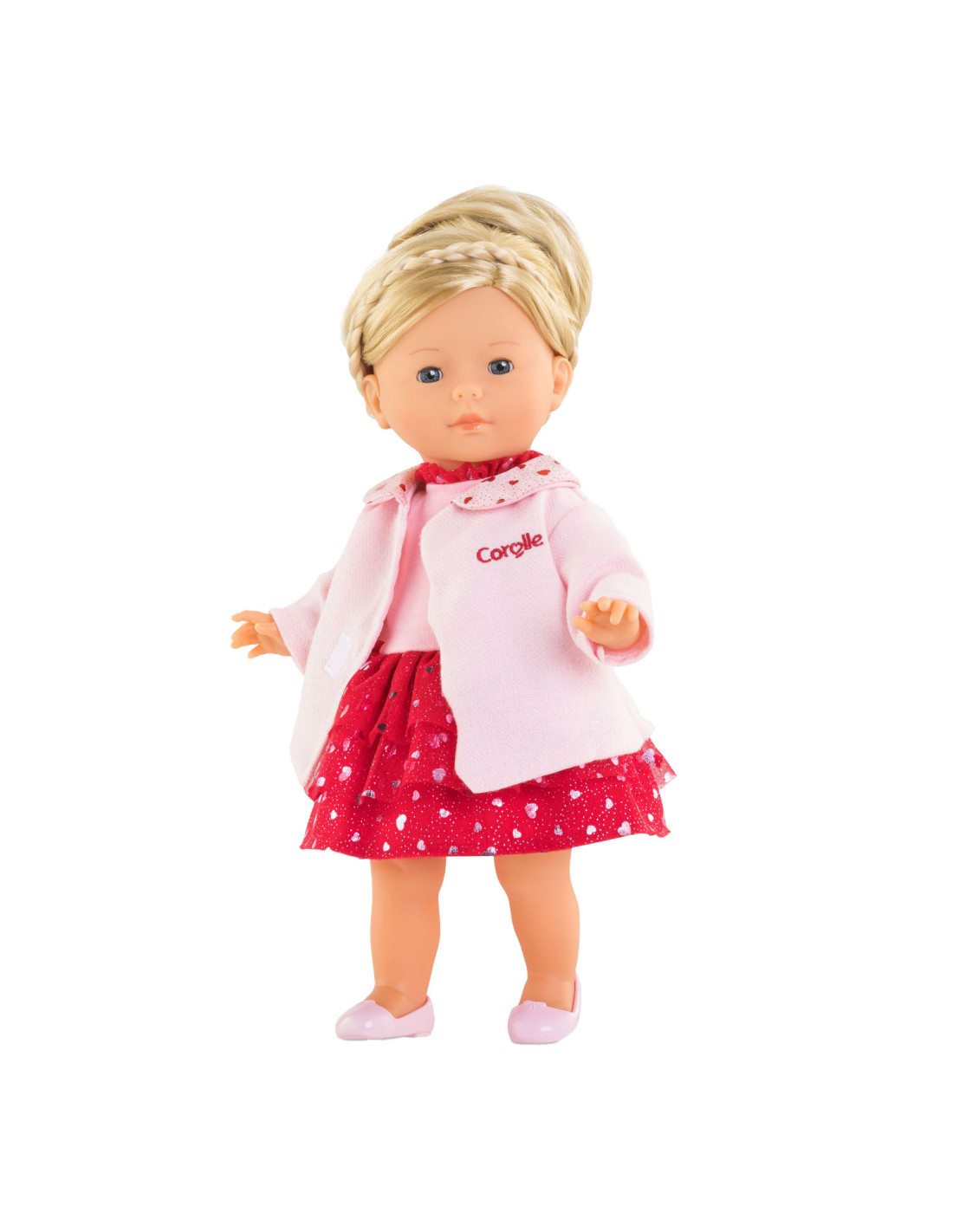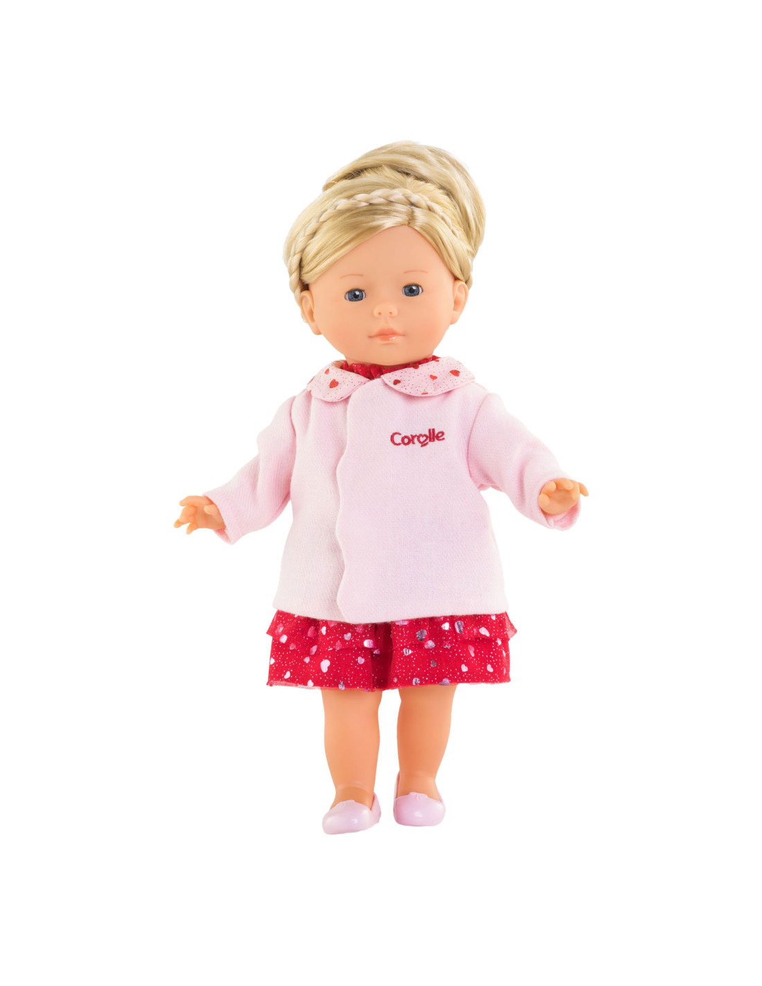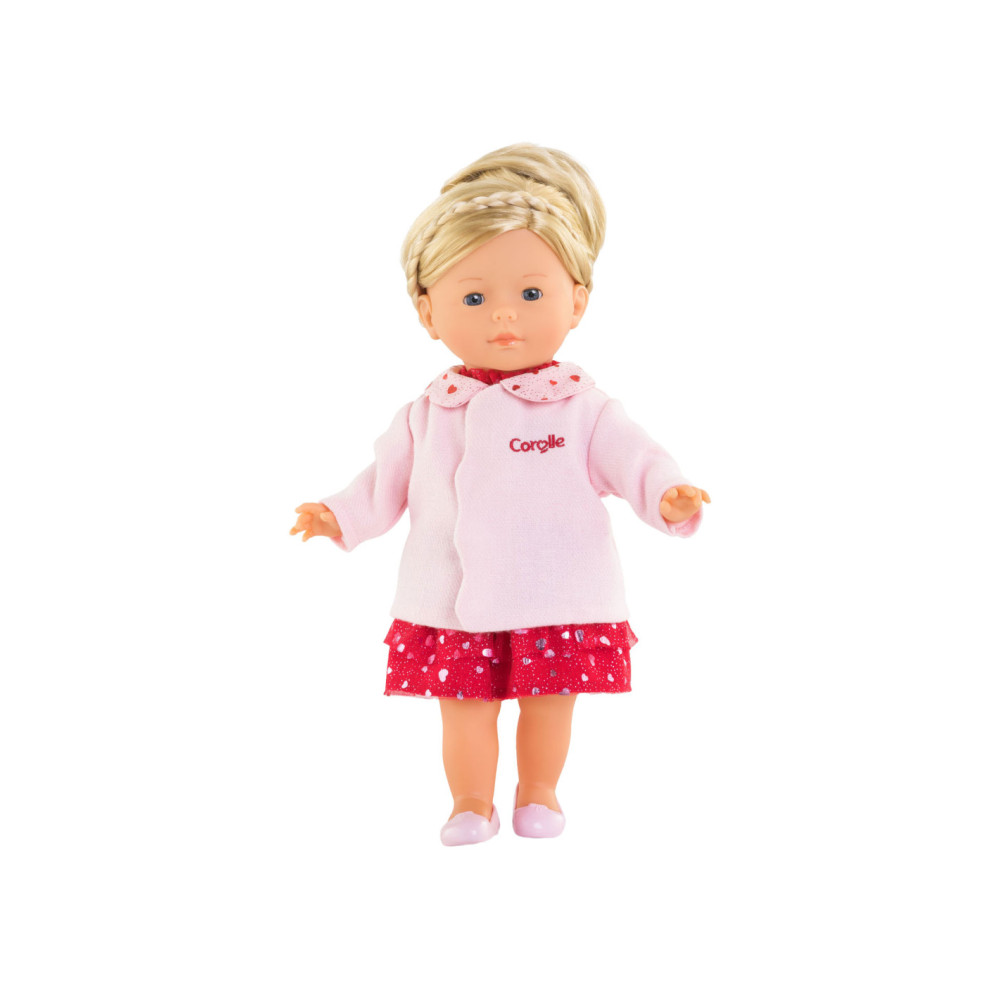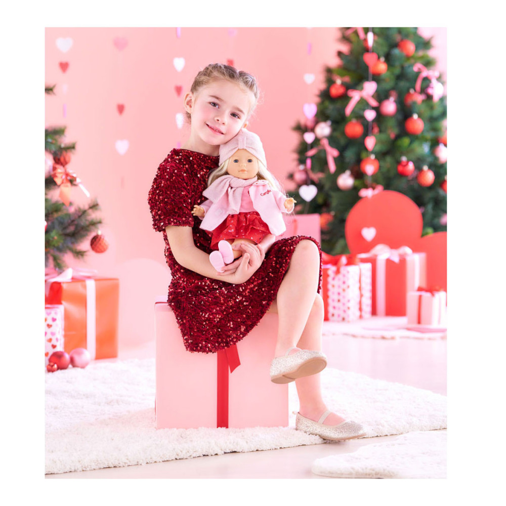 Roze poppenjas met hartjes en glitters op het kraagje. Geschikt voor poppen van 36 centimeter groot. Artikel geschikt voor kinderen vanaf 4 jaar oud.