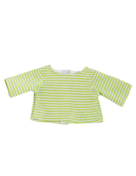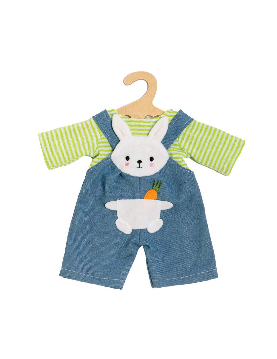 Of het nu gaat om spelen op de speelplaats, een picknick op het platteland of een uitstapje naar de favoriete ijssalon - de poppentuinbroek met gestreept shirt "Bunny Lou" van Heless is altijd perfect. Op de comfortabele tuinbroek lacht "Bunny Lou" vrolijk en heeft als tussendoortje een wortel in de praktische zak gestopt. Het groen-wit gestreepte jersey overhemd zorgt voor het bijpassende kleuraccent. Het elastische materiaal, de klittenbandsluitingen van de banden van de tuinbroek en de doorlopende klittenbandsluiting op het gestreepte overhemd zorgen ervoor dat deze outfit heel gemakkelijk aan en uit te trekken is. Een vrolijke en frisse outfit voor fleurige poppenjongens en poppenmeisjes. Deze outfit past op de meeste verkoopbare poppen van maat 35-45 cm. Het is ook verkrijgbaar in een andere versie voor poppenmaat 28-35 cm (artikel 1520382). Het artikel wordt geleverd op een houten hanger.