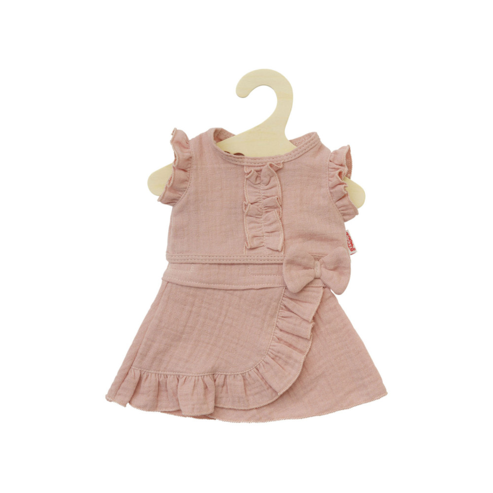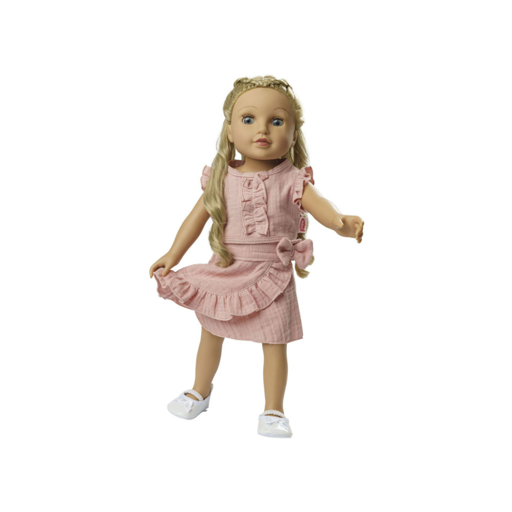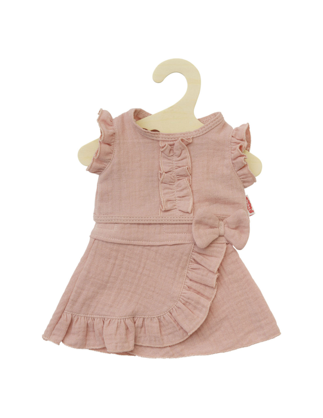 De zachte mousselinestof in een delicate roze kleur is afkomstig van gecontroleerde biologische teelt en zorgt voor een bijzonder comfortabele en natuurlijke speelervaring. Een poppenoutfit in liefdevol design dat indruk maakt door zijn zachte kleur, hoogste kwaliteit en schattige ruche-elementen.