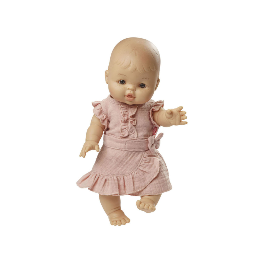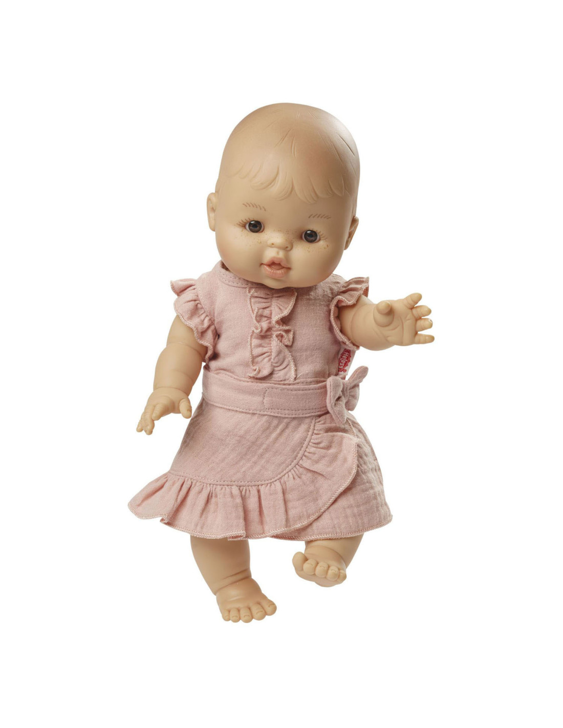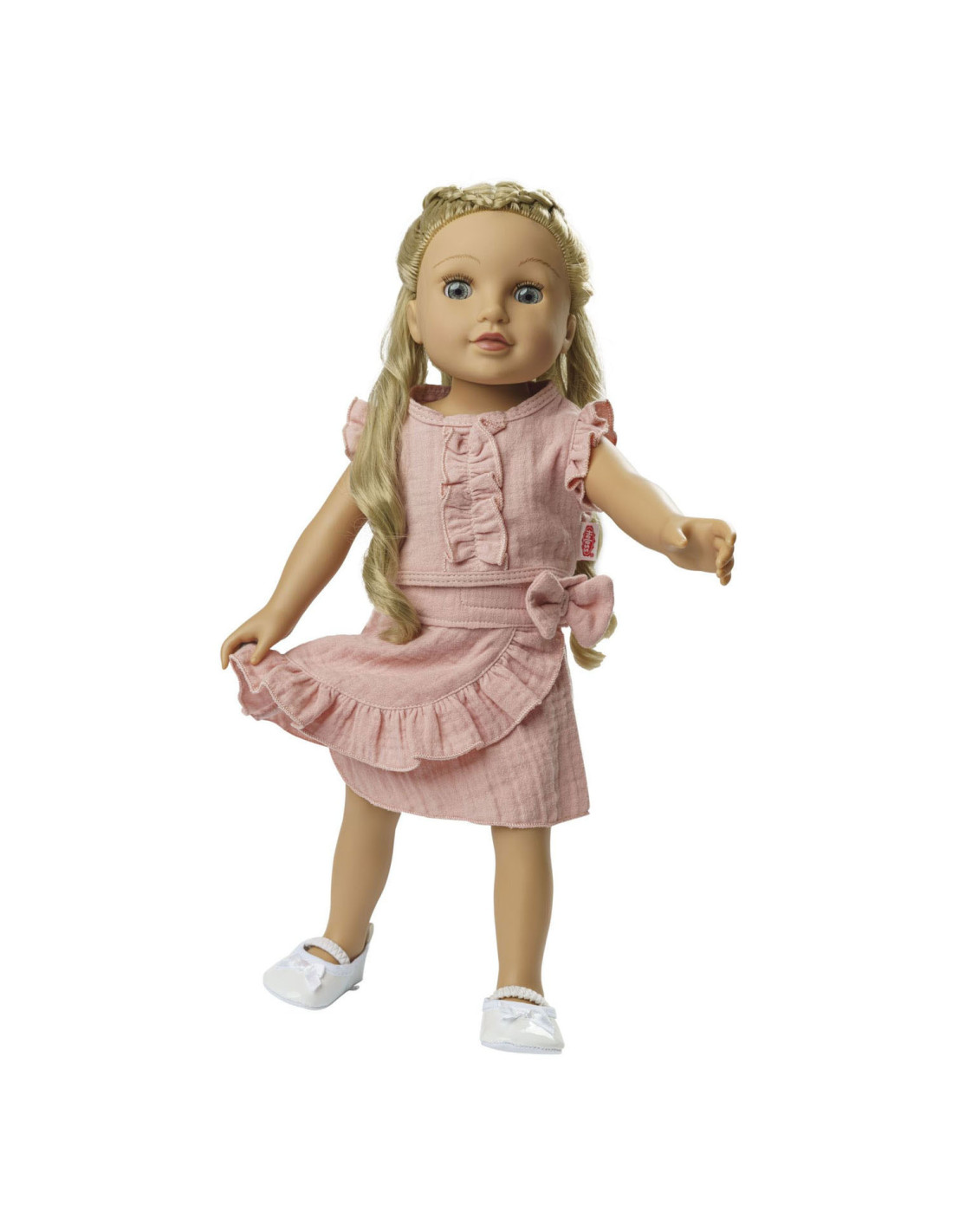De zachte mousselinestof in een delicate roze kleur is afkomstig van gecontroleerde biologische teelt en zorgt voor een bijzonder comfortabele en natuurlijke speelervaring. Een poppenoutfit in liefdevol design dat indruk maakt door zijn zachte kleur, hoogste kwaliteit en schattige ruche-elementen.