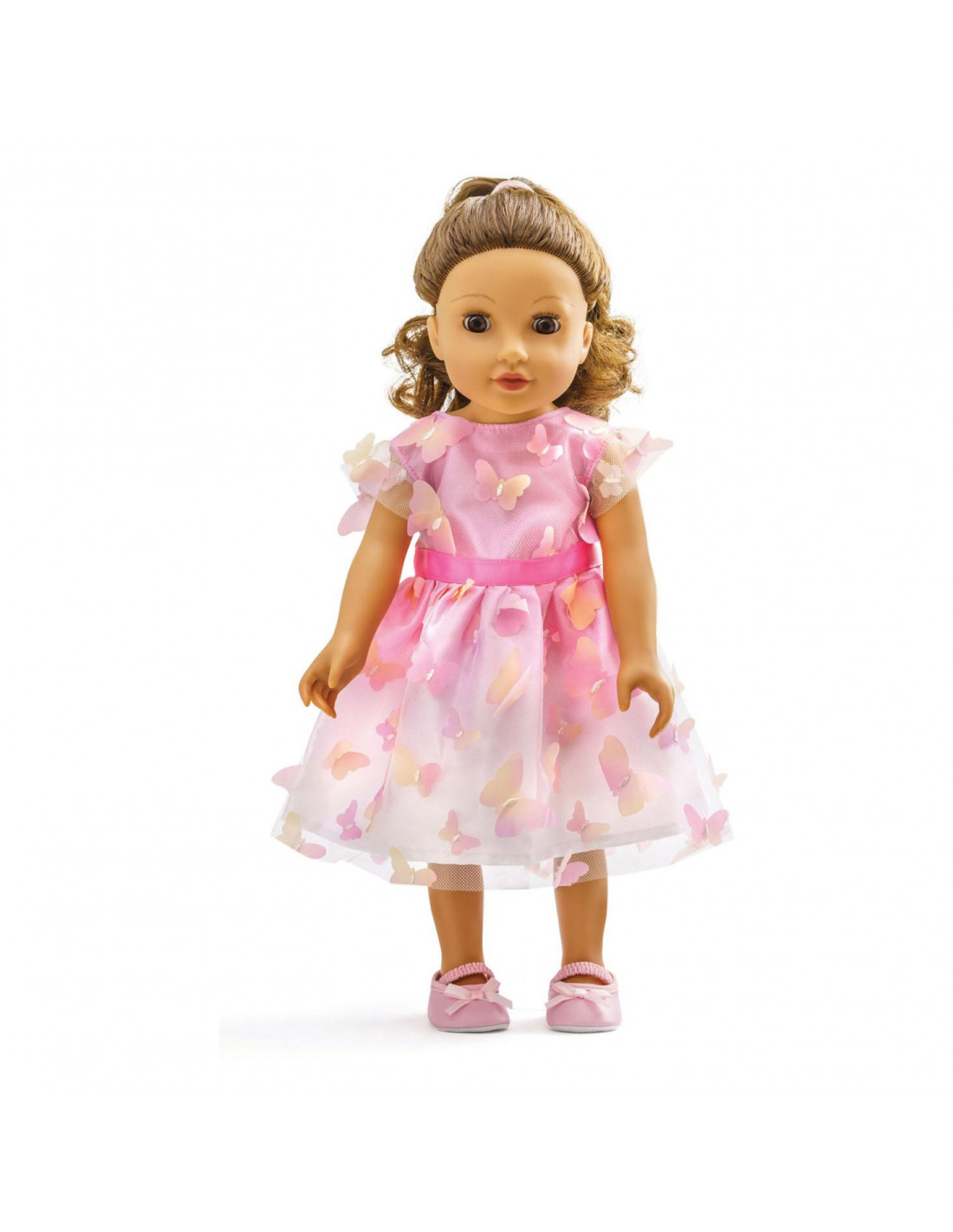 In de Heless Miss Butterfly poppenjurk voelt elke pop zo stralend en elegant als een kleine vlinder! De onderjurk in ombré-look met pastelroze kleurverloop is bedekt met een tule waarop prachtige vlinders dansen. Het roze riempje en de ruches op de schouders maken de speelse look helemaal af. De poppenjurk past op de meeste poppen van 35-45 cm. Het artikel wordt geleverd op een houten hanger. Geschikt voor kinderen van 3 jaar en ouder.