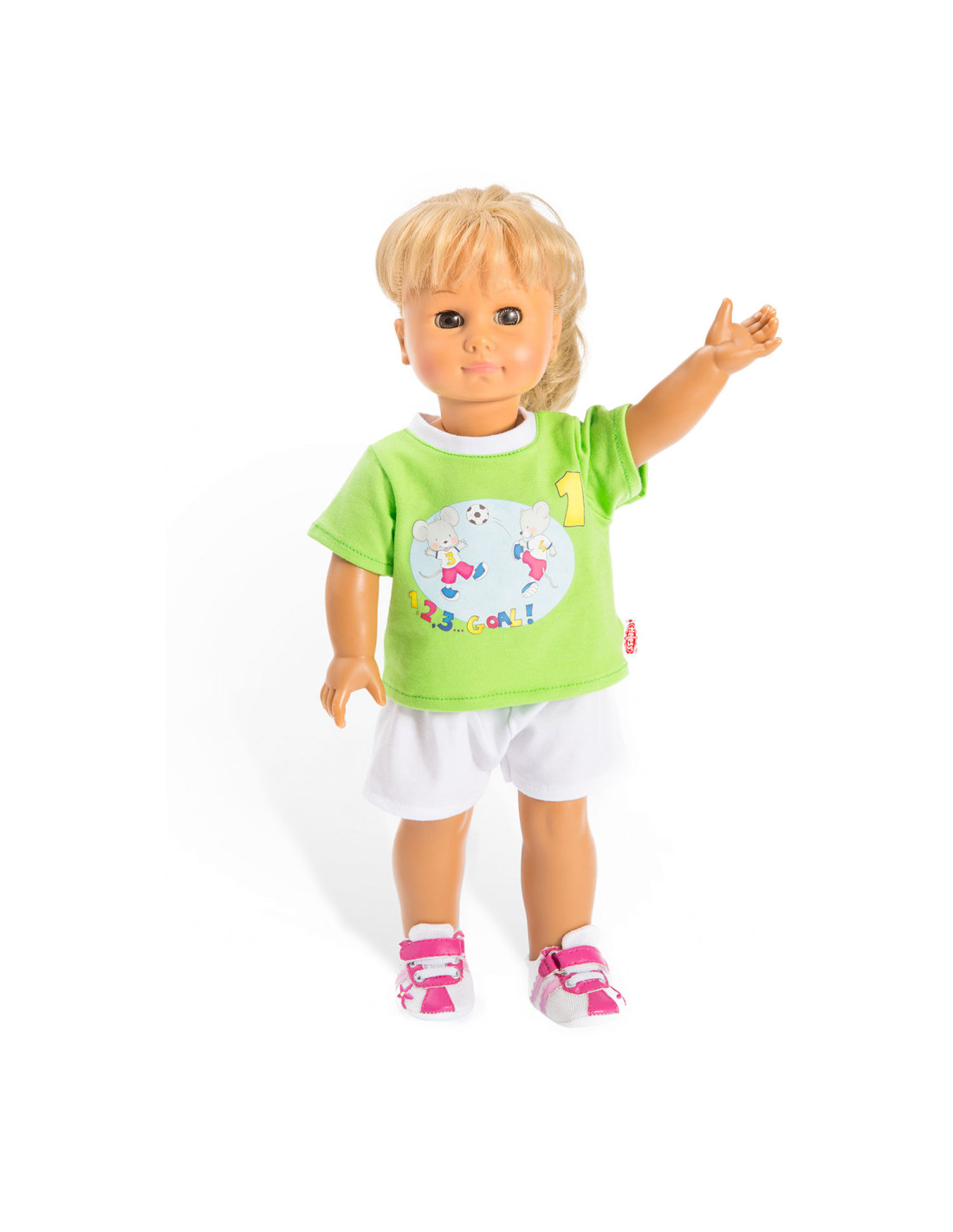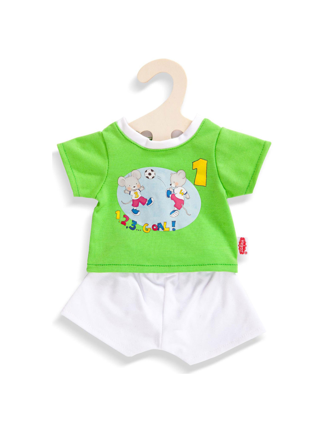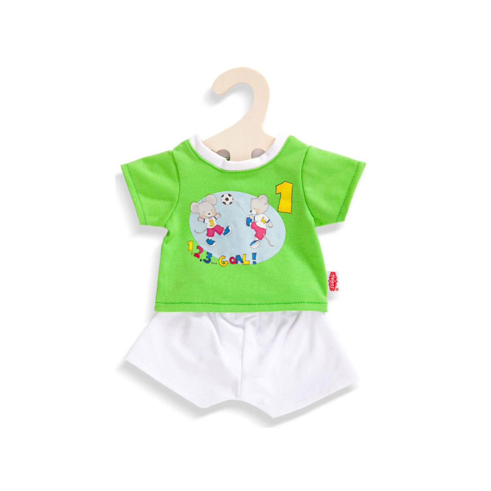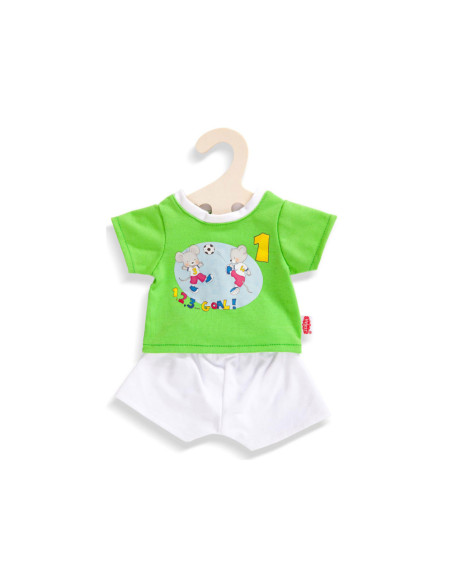 Stoere poppenoutfit bestaande uit een voetbal jumpsuit. Jouw pop is met dit setje helemaal klaar voor een potje voetbal. Geschikt voor poppen van 28 tot 35 cm.