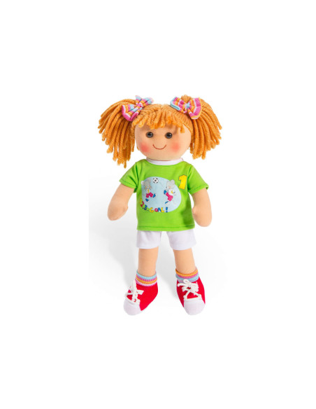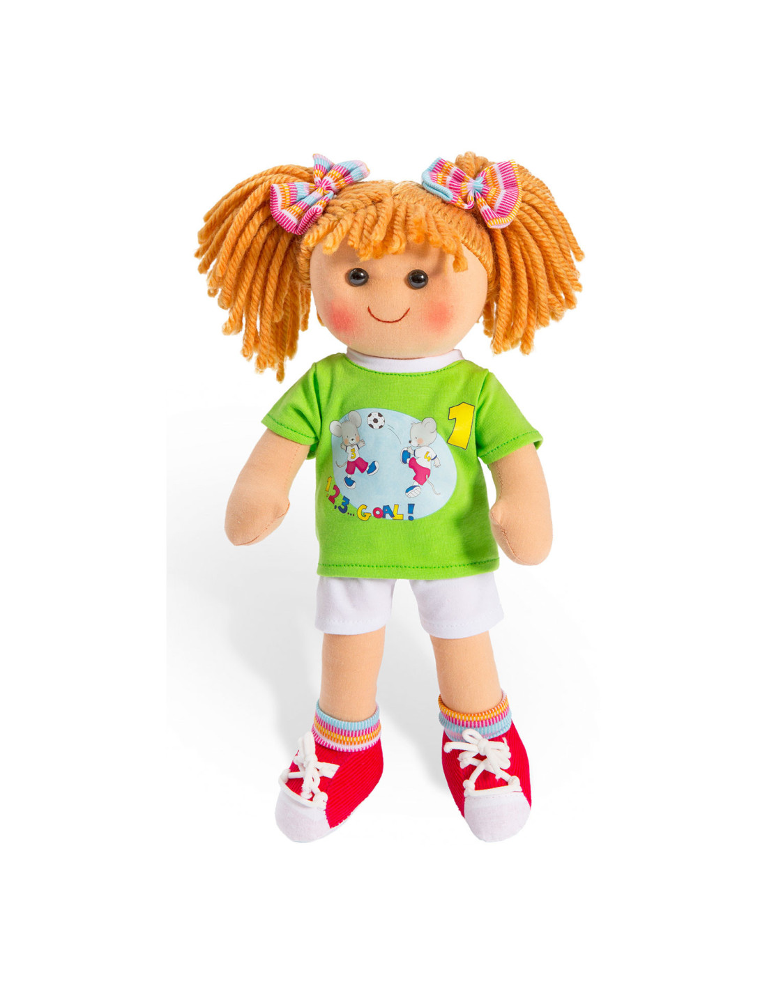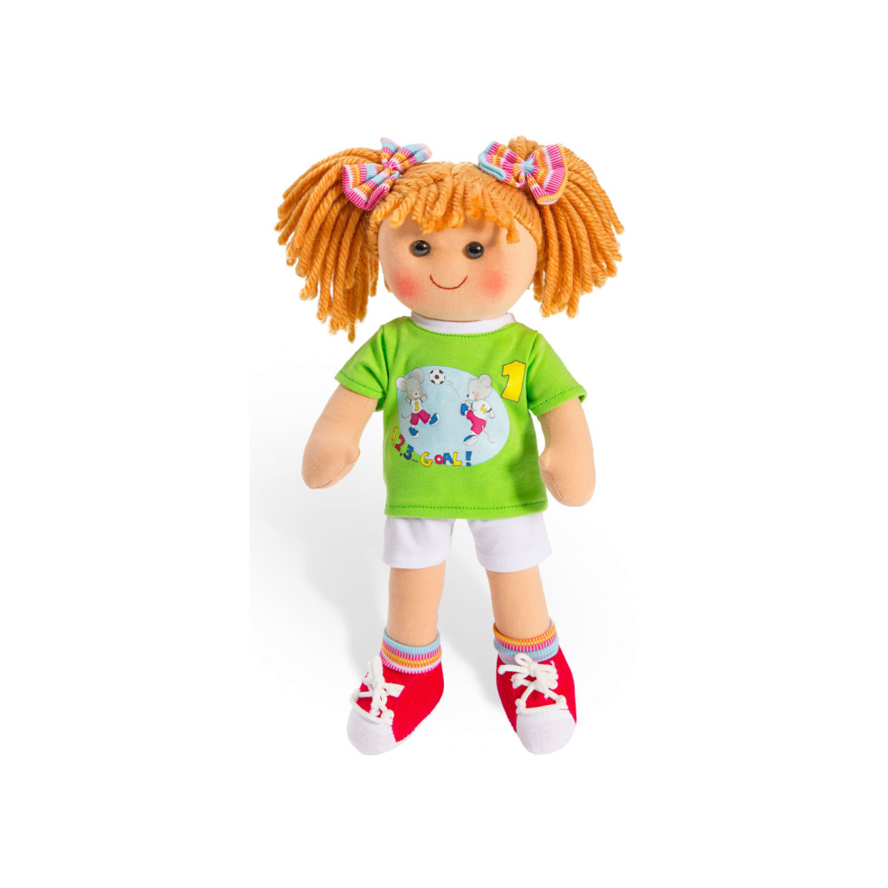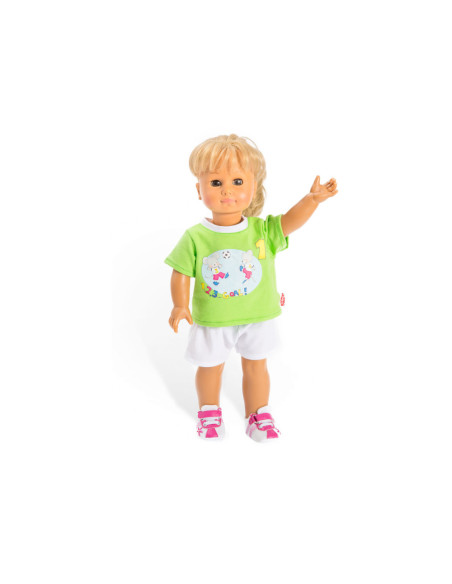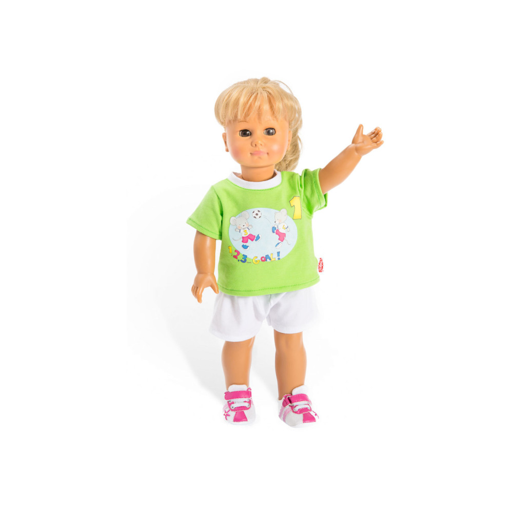 Stoere poppenoutfit bestaande uit een voetbal jumpsuit. Jouw pop is met dit setje helemaal klaar voor een potje voetbal. Geschikt voor poppen van 28 tot 35 cm.