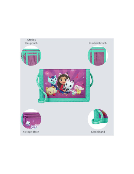 Gabby's Poppenhuis portemonnee met hoofdvak, klein contant geld vakje en een doorzichtig vakje. Geschikt voor kinderen vanaf 3 jaar.