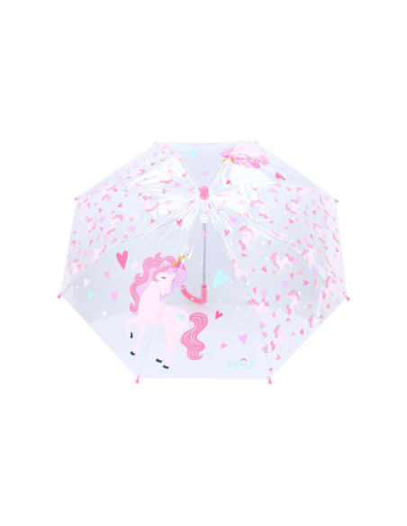 Maak kennis met de paraplu van Prêt uit de "Rainy Days" collectie! Deze transparante paraplu is een droom voor jonge unicorn-liefhebbers die droog willen blijven met een vleugje magie. Met roze accenten en schitterende plaatjes van eenhoorns is deze paraplu de perfecte mix van stijl en functionaliteit. Het transparante ontwerp maakt het mogelijk voor kinderen om de regen te zien vallen terwijl ze droog blijven. De stevige constructie en de comfortabele handgreep maken deze paraplu eenvoudig te openen en te sluiten, perfect voor kleine handjes. De roze accenten geven een vrolijke touch, terwijl de plaatjes van eenhoorns voor een magisch element zorgen. Voeg deze betoverende paraplu van Prêt uit de "Rainy Days" collectie toe aan je assortiment en bied je klanten een product dat zowel praktisch als leuk is. Perfect voor kinderen die graag een stukje fantasie met zich meenemen, zelfs als het regent. Met deze paraplu kunnen kinderen hun liefde voor eenhoorns uiten en droog blijven tijdens regenachtige dagen. Maak van regenachtige dagen een kans voor plezier en stijl met deze magische en functionele paraplu!