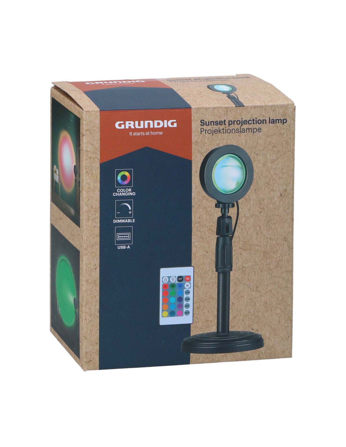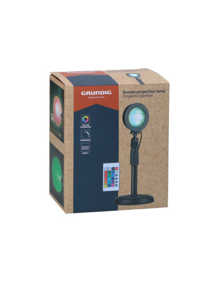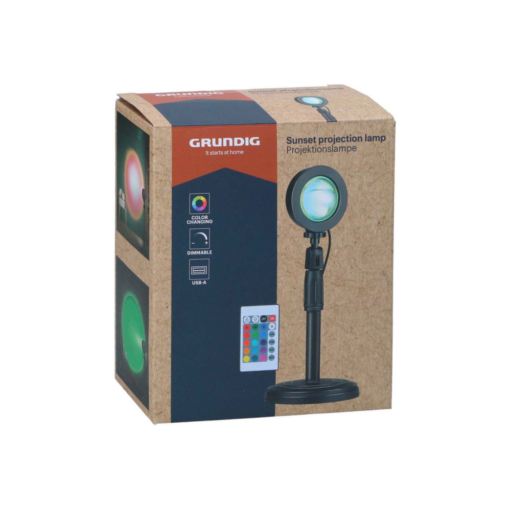 Deze zonsondergang projectielamp van Grundig biedt een kleurrijke verlichtingservaring. Met een afstandsbediening kan je eenvoudig de kleuren wisselen en dimmen. USB-A aansluiting voor eenvoudig opladen.