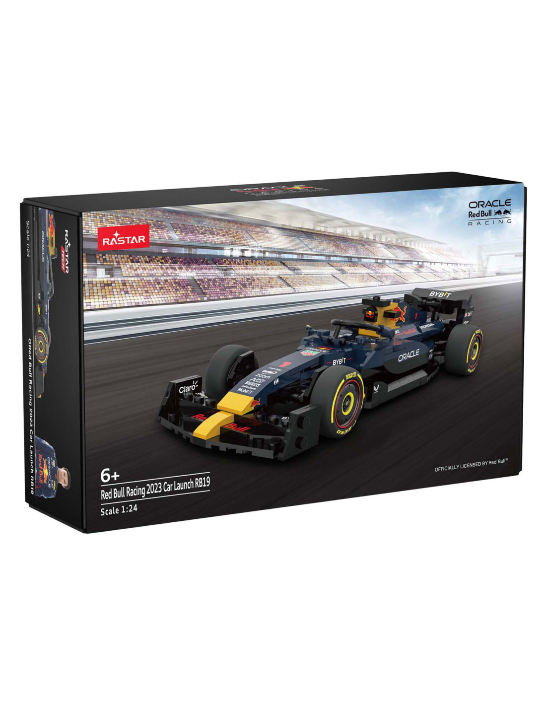 De RASTAR Red Bull Racing RB19 is een gedetailleerde bouwset op schaal 1:24 met 333 kunststof onderdelen in Red Bull-kleuren. De set van 22,7 x 5 x 8,5 cm bevat bedrukte banden, een stickervel en een instructieboekje. Geschikt voor bouwers vanaf 6 jaar.