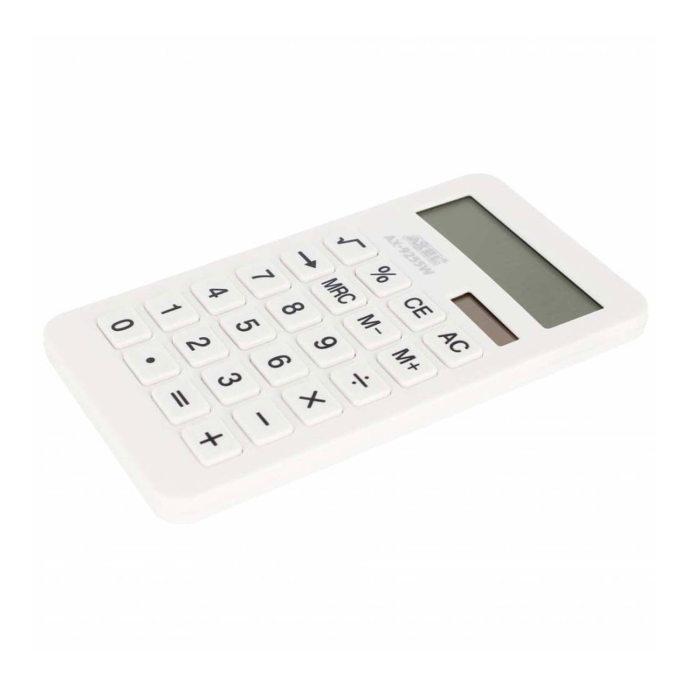 Functionele rekenmachine voor kantoor, school en thuisgebruik. Solide constructie en sterke materialen garanderen een lange levensduur van rekenmachines. De rekenmachine heeft een onafhankelijk geheugen, automatische uitschakelfunctie, weergave van maximaal 12 cijfers en grote toetsen, witte behuizing.