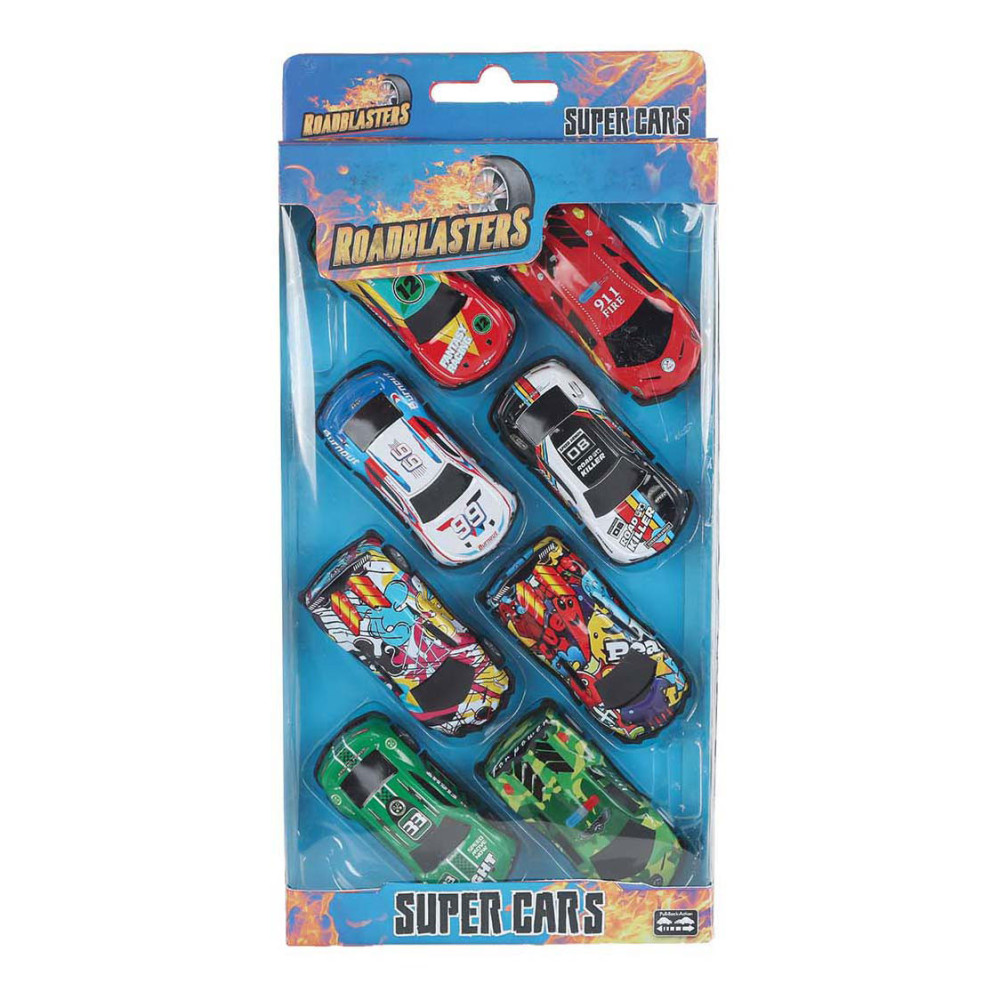 Roadblasters Auto's Die Cast Pull Back 7,5cm, 8st.
