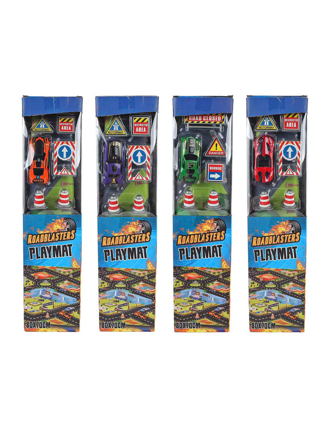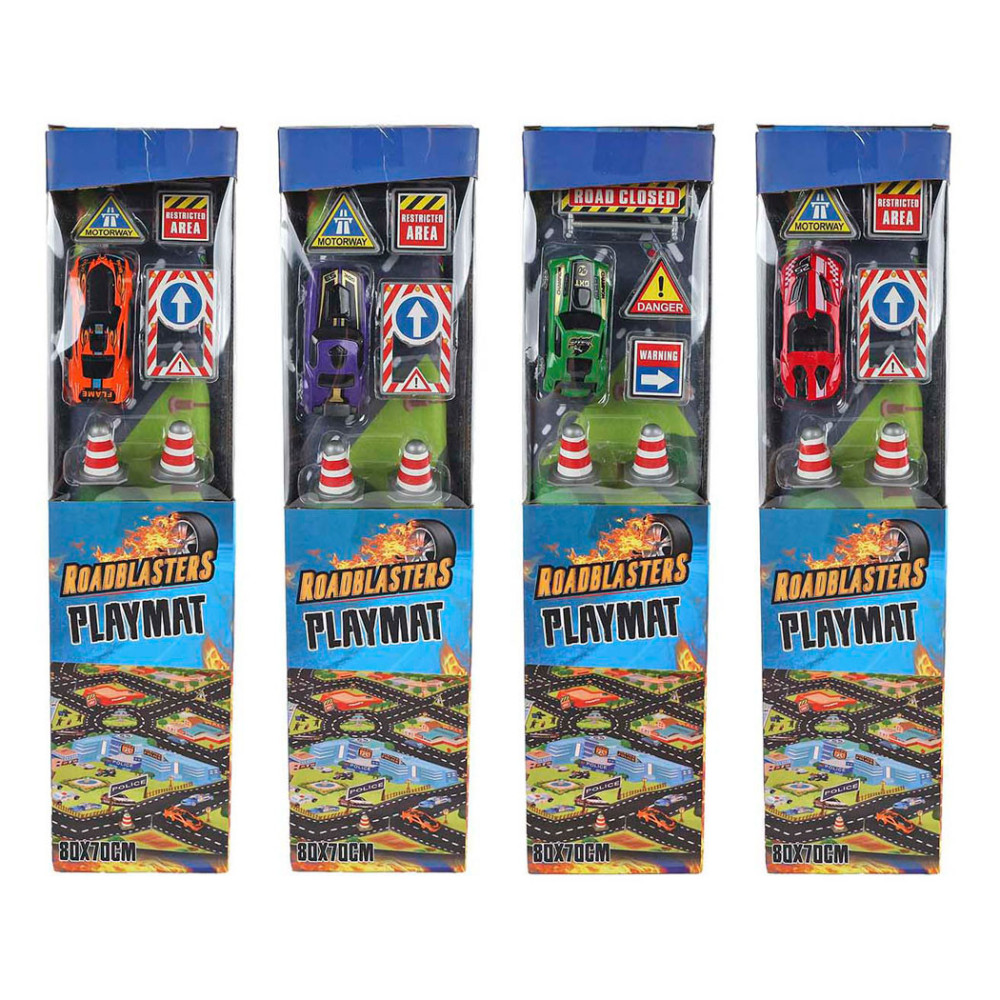 Roadblasters verkeerskleed 80x70 cm met auto en accessoires. Geschikt voor kinderen vanaf 3 jaar.