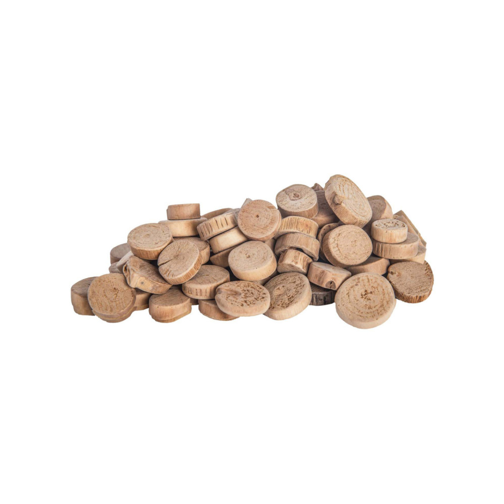 De plakjes hout variëren in grootte, 1 cm - 2 cm breed, 1 cm -2,5 cm lang. Elk plakje hout heeft een dikte van ongeveer 6 mm. Ca. 550 stuks. Natuurlijke producten - daarom zullen maten, vormen en aantal variëren.
