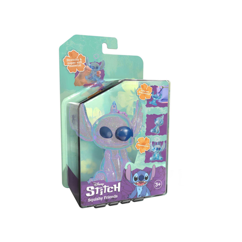 Deze squishy en stretchy Stitch is gemaakt van superzacht materiaal dat heerlijk aanvoelt en uitnodigt om in te knijpen of aan te trekken! Squishy Stitch is voorzien van een sleutelhanger, dus hang hem aan je tas of je sleutelbos en neem hem overal mee naartoe! Dit is een assortiment artikel en verkrijgbaar in het figuur van Stitch (blauw) en het figuur van Angel (roze). Stitch heeft een stoere metallic- en Angel een magische parelmoer afwerking. Leeftijdsindicatie: 3 jaar+.