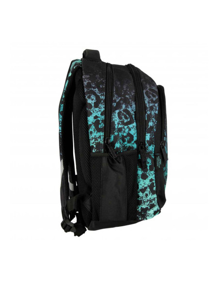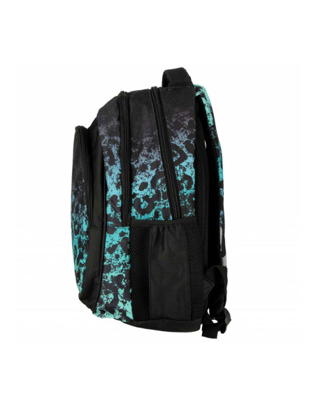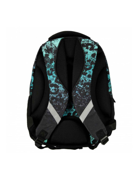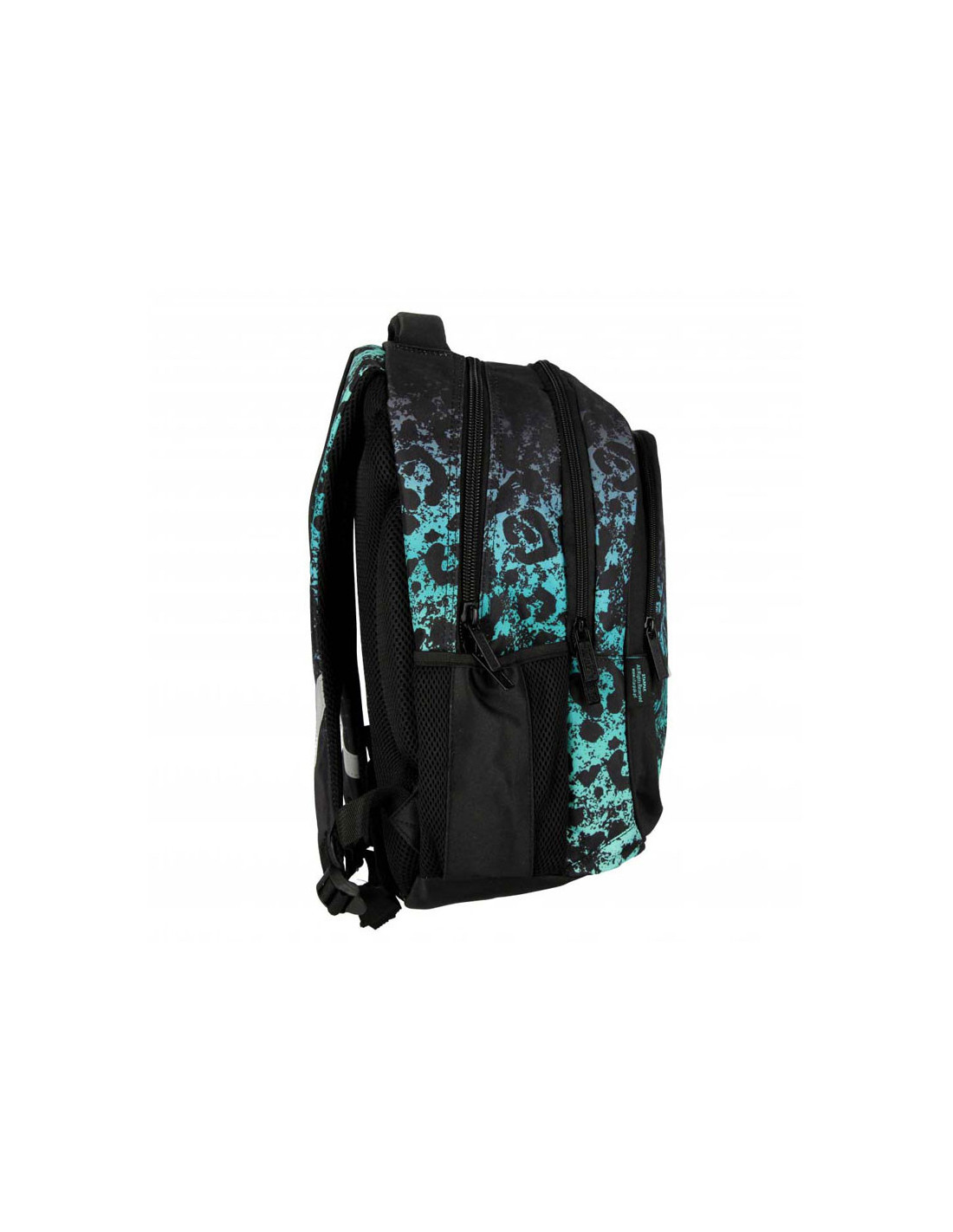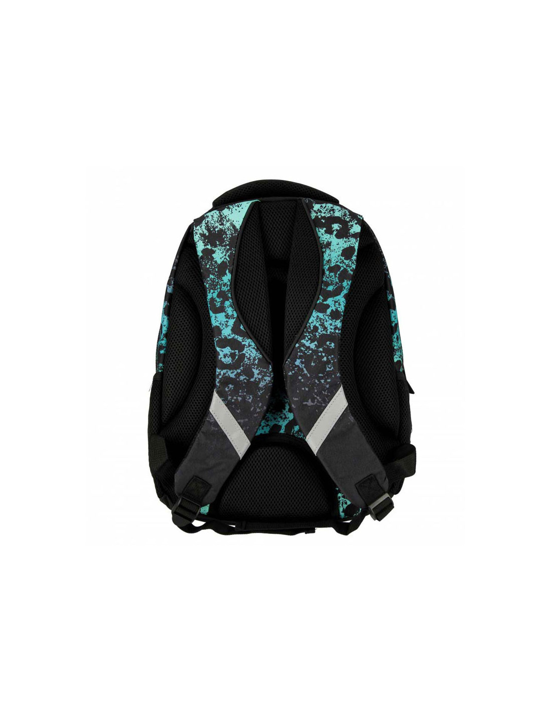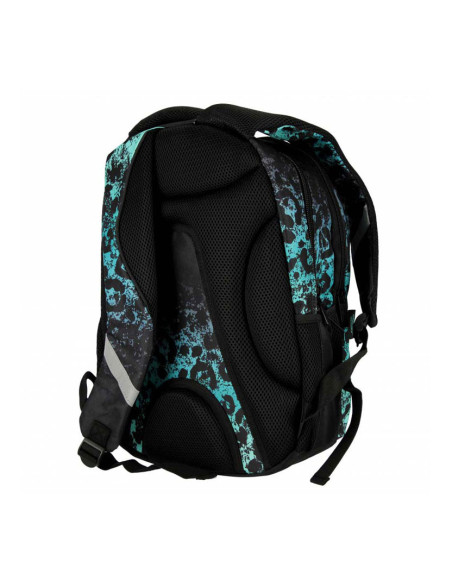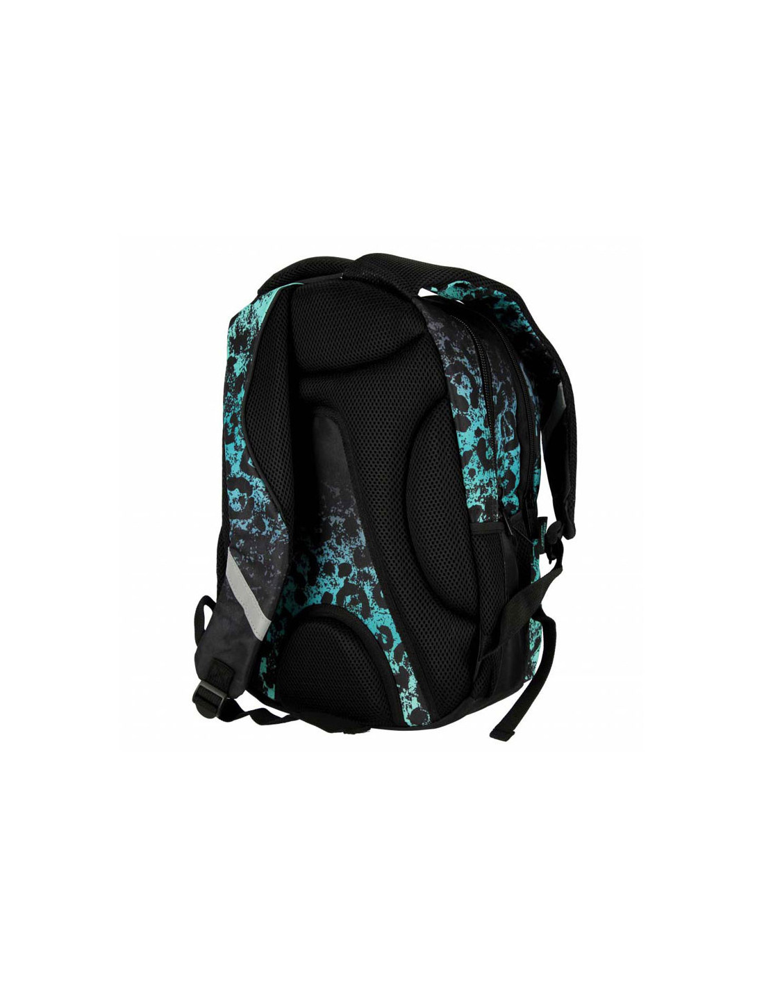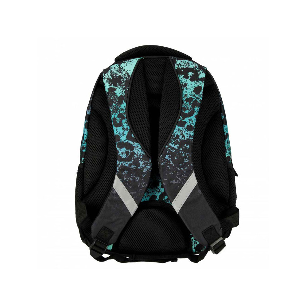 Rugtas met blauw zwarte panterprint. De tas heeft 3 vakken en 2 vakjes voor waterflessen.