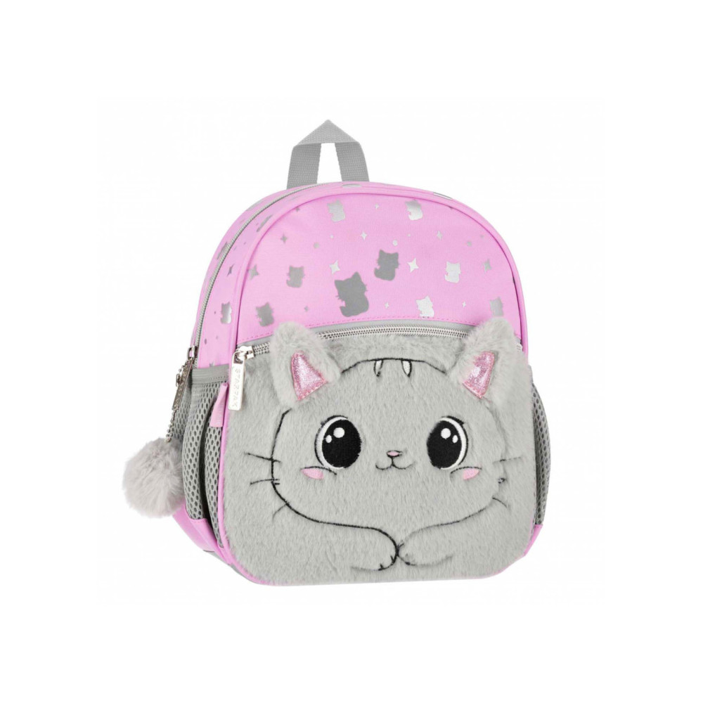 STARPak Mini Kitty Plush rugzak voor kleuters met hoofdvak en voorvak. Verstelbare banden, gevoerde binnenzijde en stevige ritsen. Gemaakt van textiel, afmetingen 26 x 23 x 9 cm. Geschikt vanaf 3 jaar.