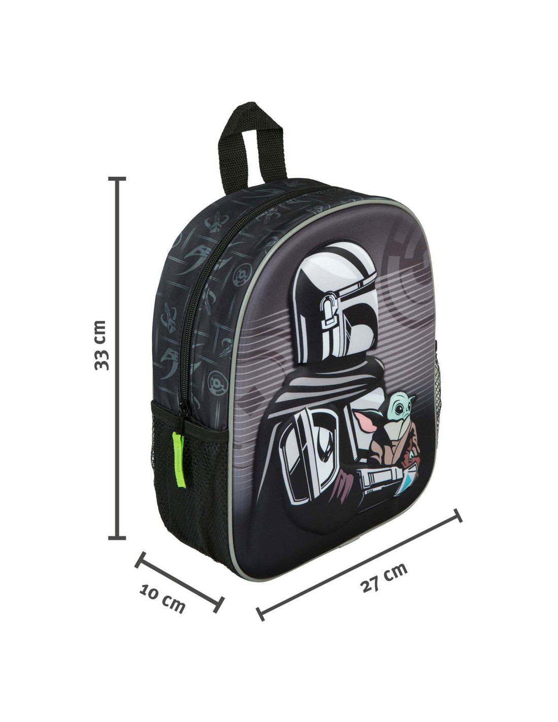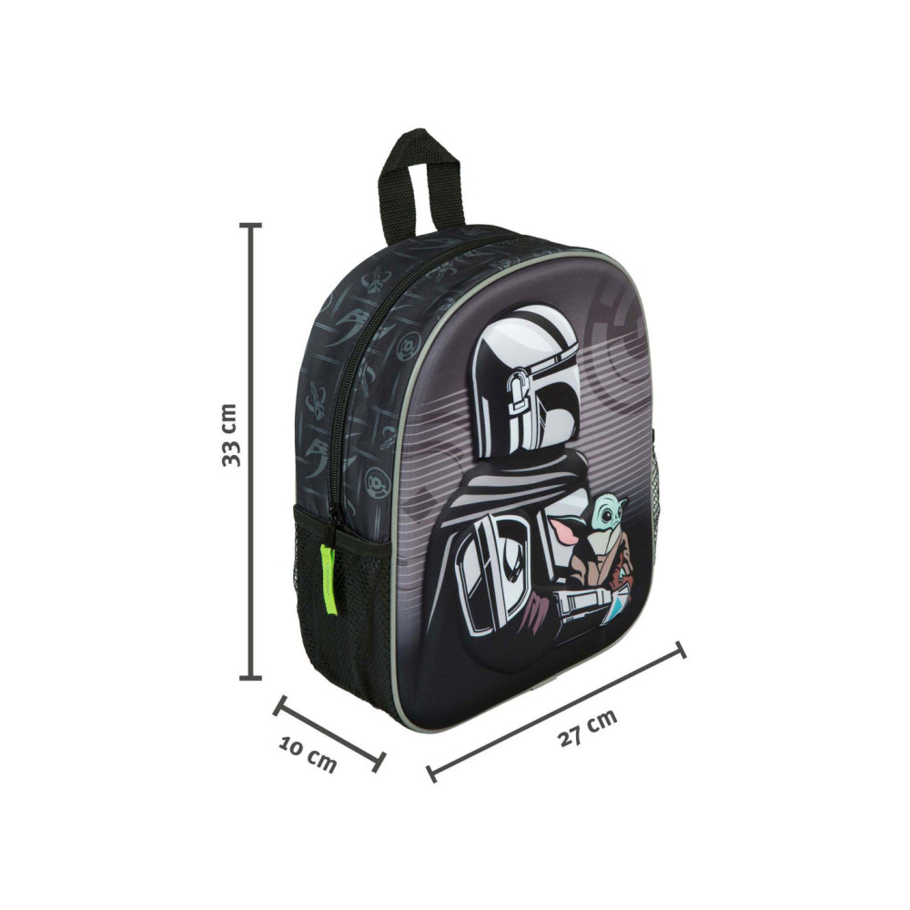 3D backpack met The Mandalorian en Grogu 3D opdruk. De tas is 27 x 10 x 33 cm.